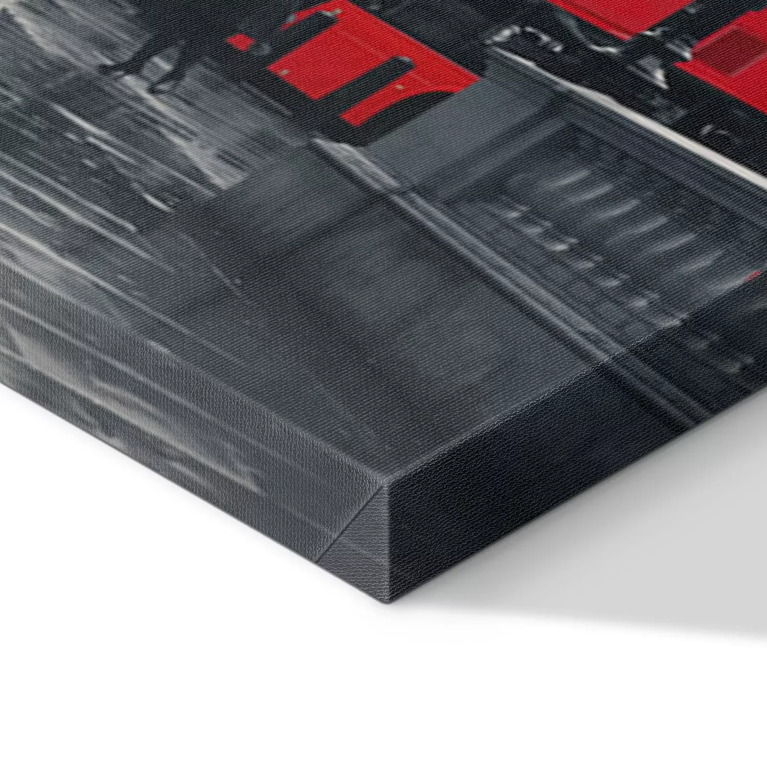 De print wordt aangebracht op hoogwaardig canvas dat op een schildersweefgetouw (spieraam) wordt gespannen. Omdat de print de zijranden bedekt, hoeft het ontwerp niet met een extra kader te worden omlijst. Wij raden ook composities aan die uit meerdere foto's bestaan en zo een coherente compositie vormen.