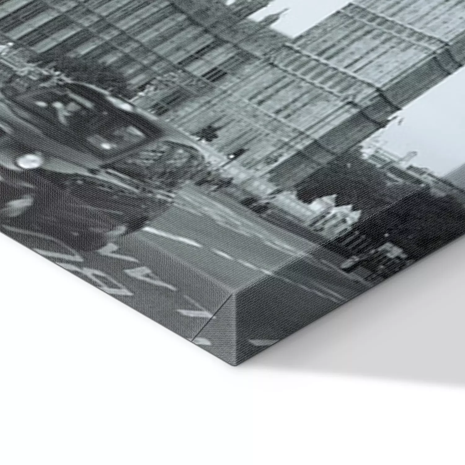 De print wordt aangebracht op hoogwaardig canvas dat op een schildersweefgetouw (spieraam) wordt gespannen. Omdat de print de zijranden bedekt, hoeft het ontwerp niet met een extra kader te worden omlijst. Wij raden ook composities aan die uit meerdere foto's bestaan en zo een coherente compositie vormen.