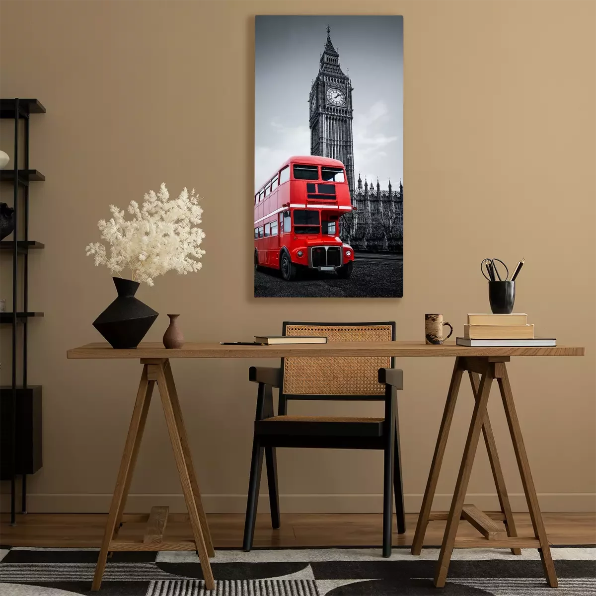 Big Ben in Londen mit roter Telefonzelle und Bus