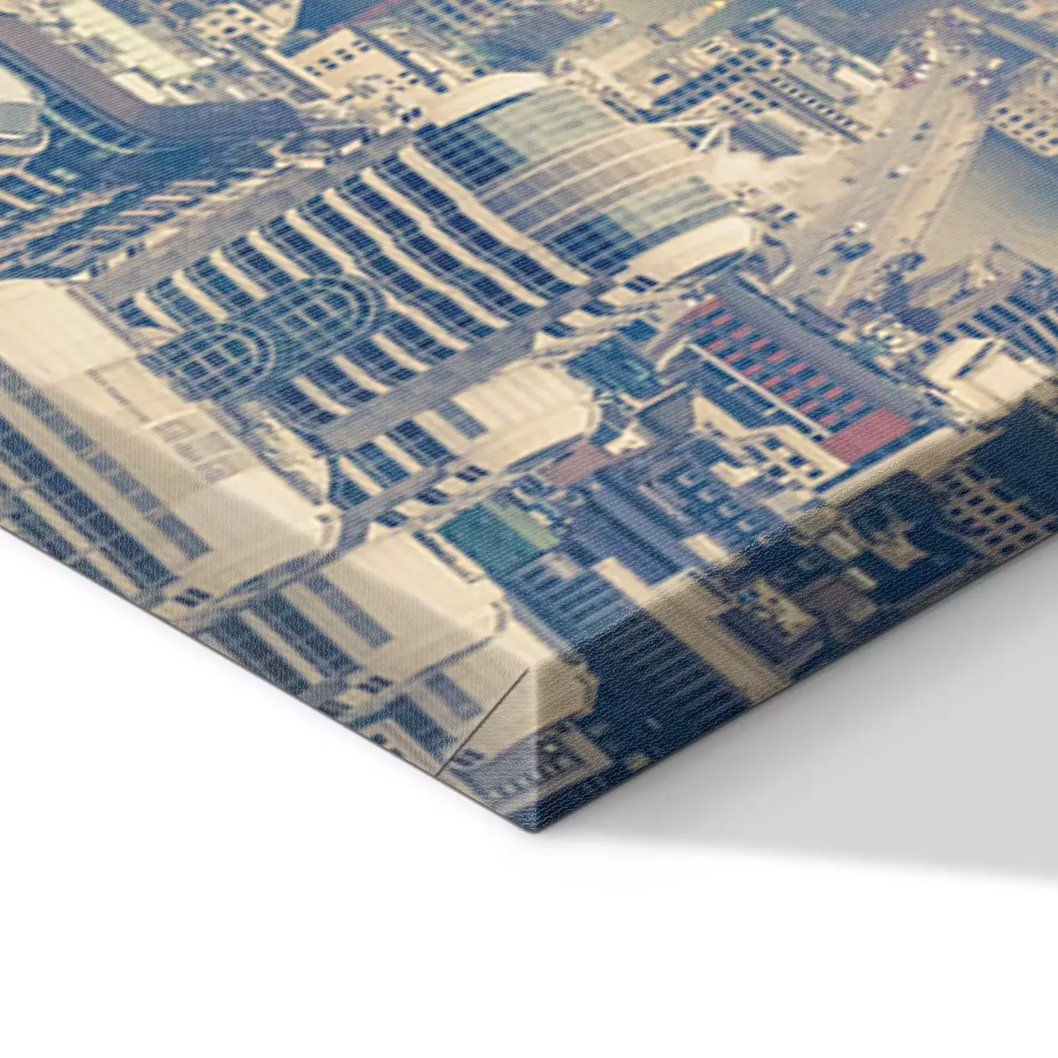 De print wordt aangebracht op hoogwaardig canvas dat op een schildersweefgetouw (spieraam) wordt gespannen. Omdat de print de zijranden bedekt, hoeft het ontwerp niet met een extra kader te worden omlijst. Wij raden ook composities aan die uit meerdere foto's bestaan en zo een coherente compositie vormen.