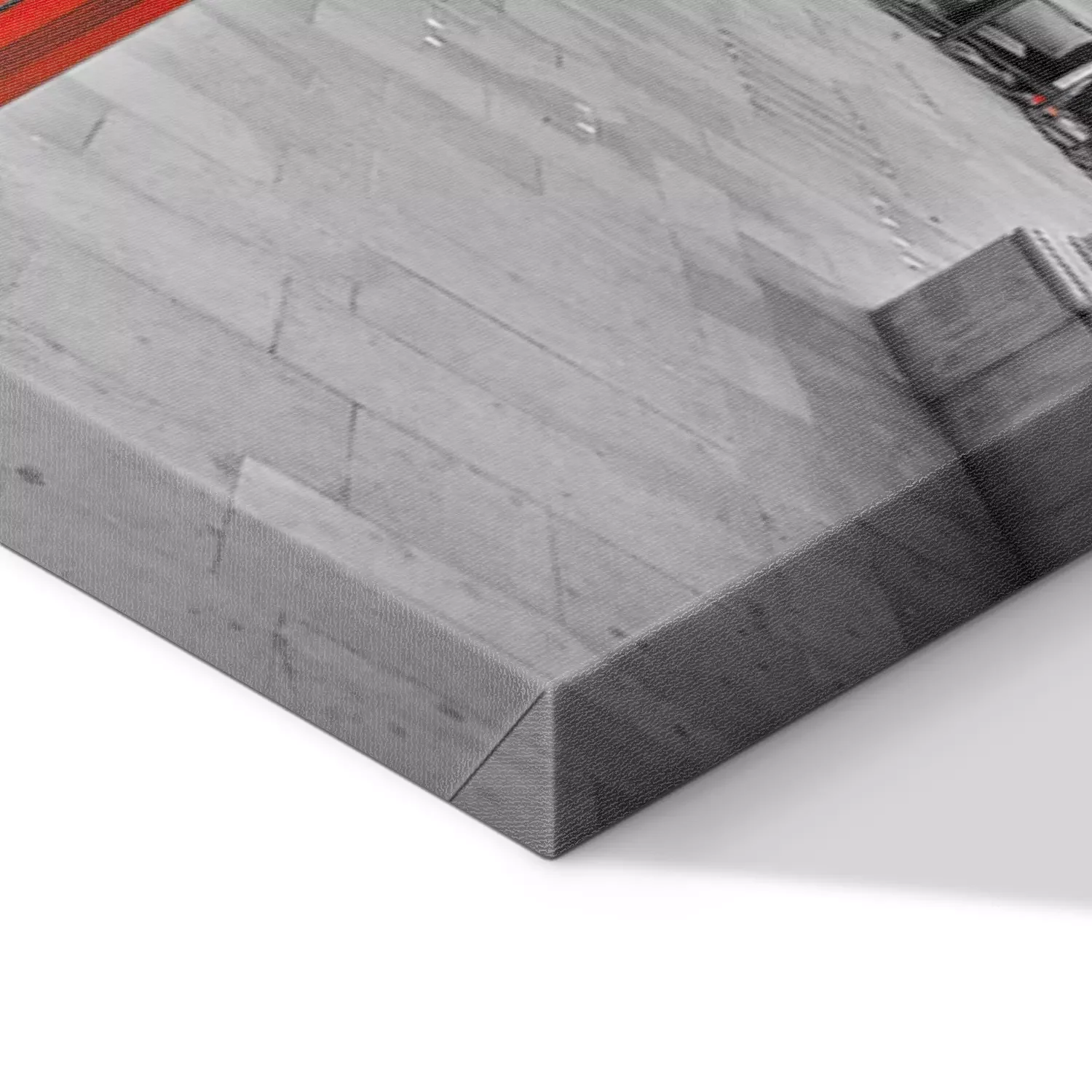 De print wordt aangebracht op hoogwaardig canvas dat op een schildersweefgetouw (spieraam) wordt gespannen. Omdat de print de zijranden bedekt, hoeft het ontwerp niet met een extra kader te worden omlijst. Wij raden ook composities aan die uit meerdere foto's bestaan en zo een coherente compositie vormen.