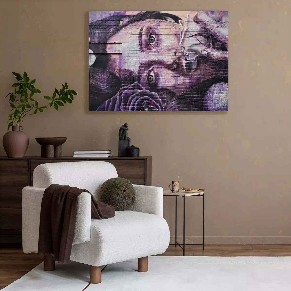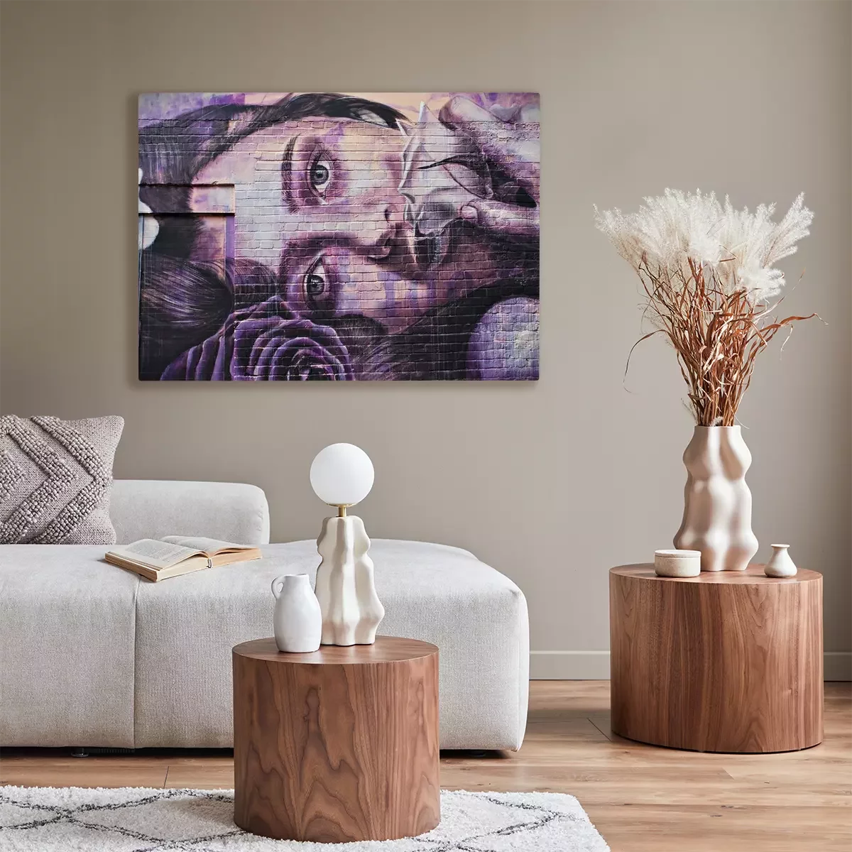 De print wordt aangebracht op hoogwaardig canvas dat op een schildersweefgetouw (spieraam) wordt gespannen. Omdat de print de zijranden bedekt, hoeft het ontwerp niet met een extra kader te worden omlijst. Wij raden ook composities aan die uit meerdere foto's bestaan en zo een coherente compositie vormen.