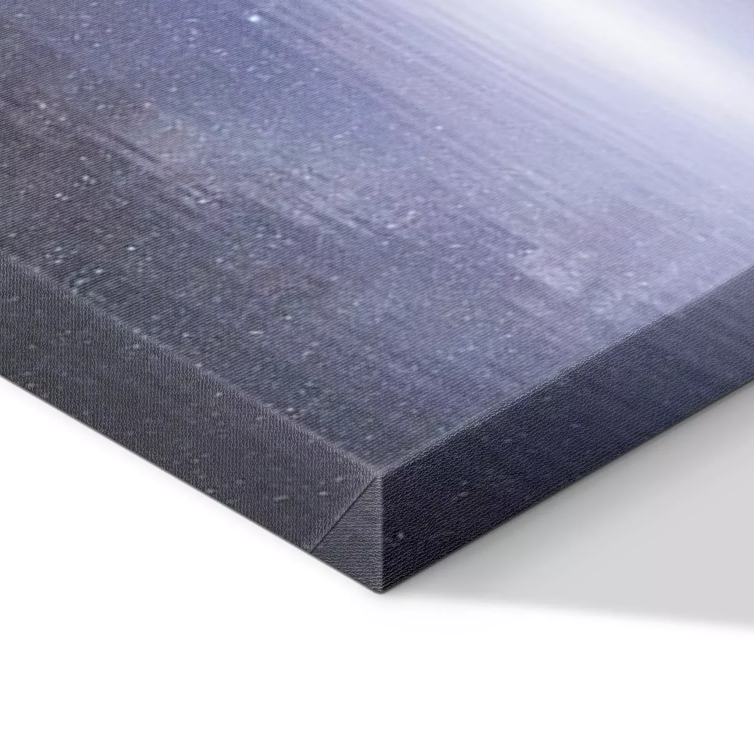 De print wordt aangebracht op hoogwaardig canvas dat op een schildersweefgetouw (spieraam) wordt gespannen. Omdat de print de zijranden bedekt, hoeft het ontwerp niet met een extra kader te worden omlijst. Wij raden ook composities aan die uit meerdere foto's bestaan en zo een coherente compositie vormen.