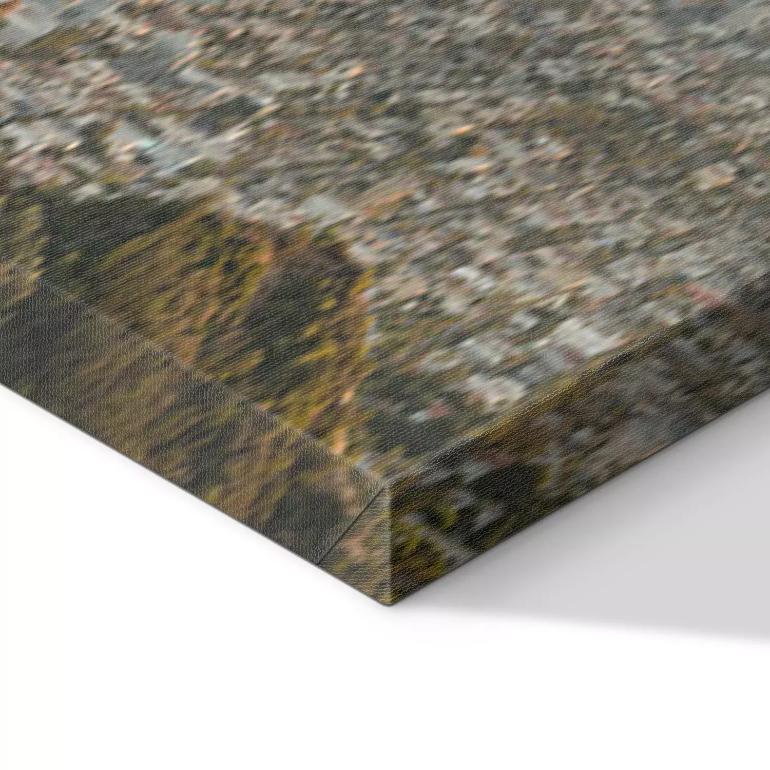 De print wordt aangebracht op hoogwaardig canvas dat op een schildersweefgetouw (spieraam) wordt gespannen. Omdat de print de zijranden bedekt, hoeft het ontwerp niet met een extra kader te worden omlijst. Wij raden ook composities aan die uit meerdere foto's bestaan en zo een coherente compositie vormen.