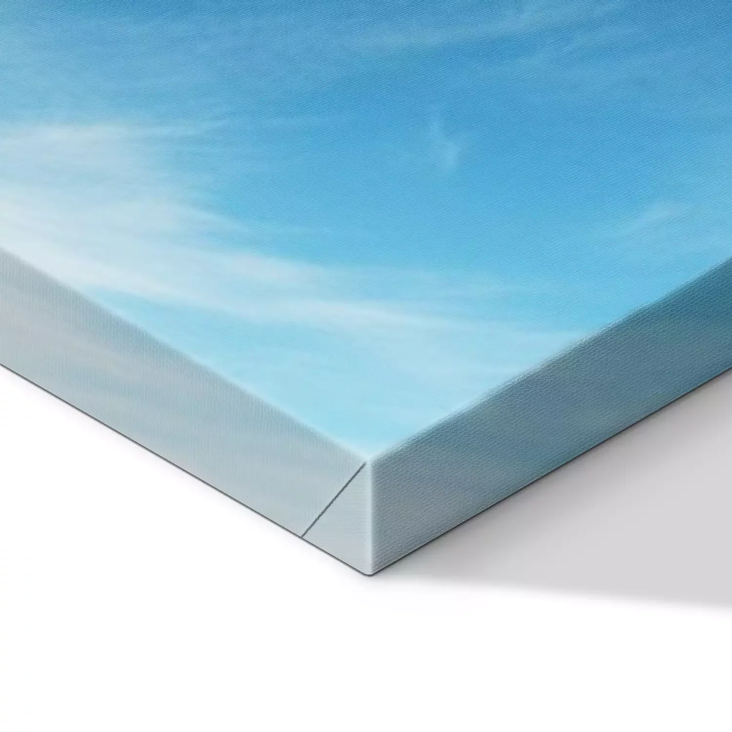 De print wordt aangebracht op hoogwaardig canvas dat op een schildersweefgetouw (spieraam) wordt gespannen. Omdat de print de zijranden bedekt, hoeft het ontwerp niet met een extra kader te worden omlijst. Wij raden ook composities aan die uit meerdere foto's bestaan en zo een coherente compositie vormen.