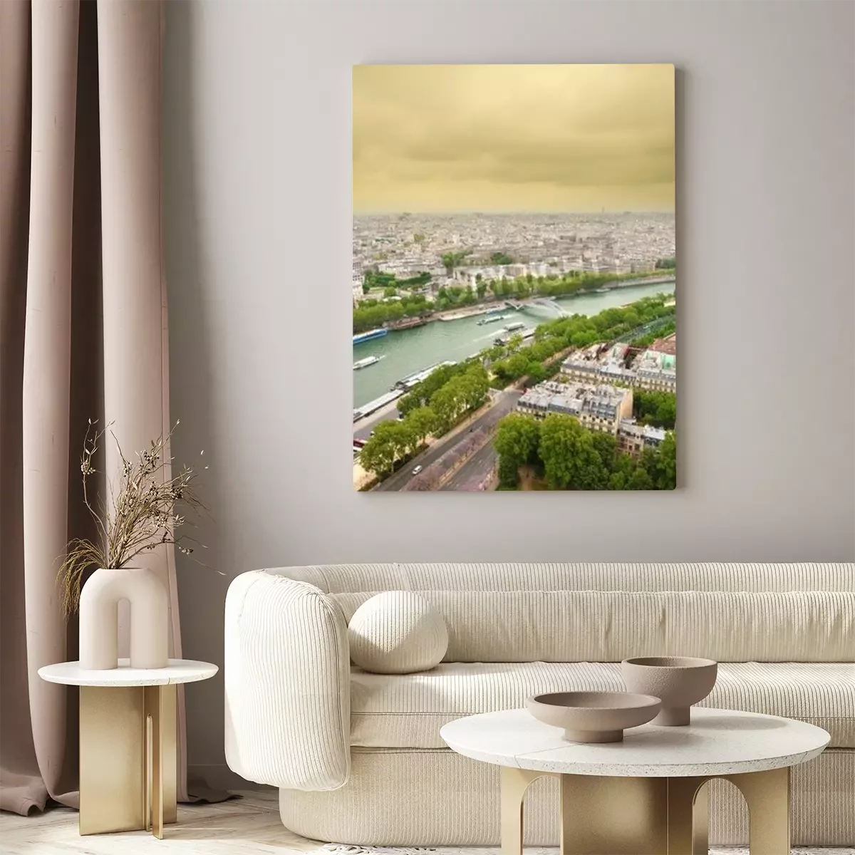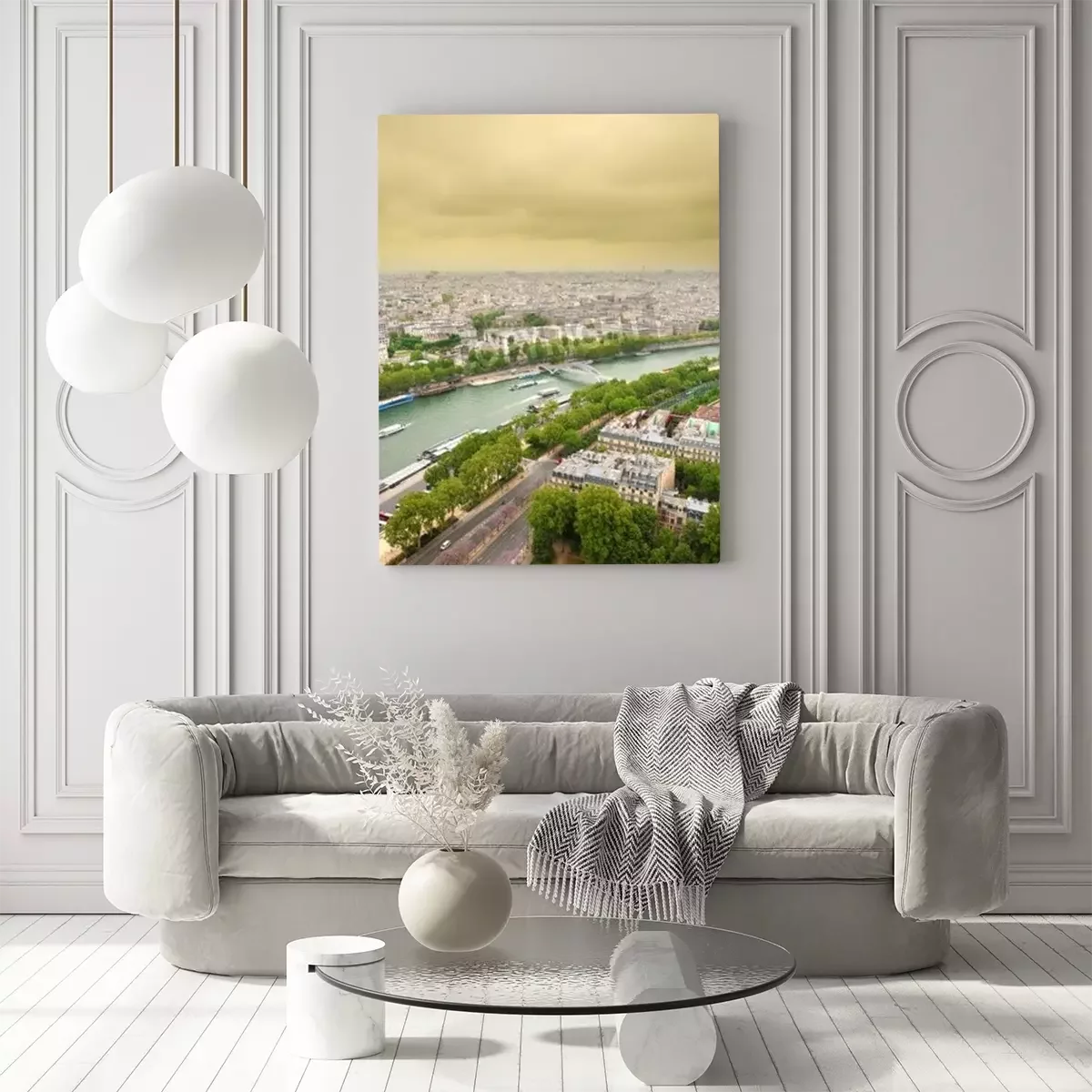 Canvas Luchtfoto uitzicht op de Seine van de Eiffeltoren, Frankrijk Parijs