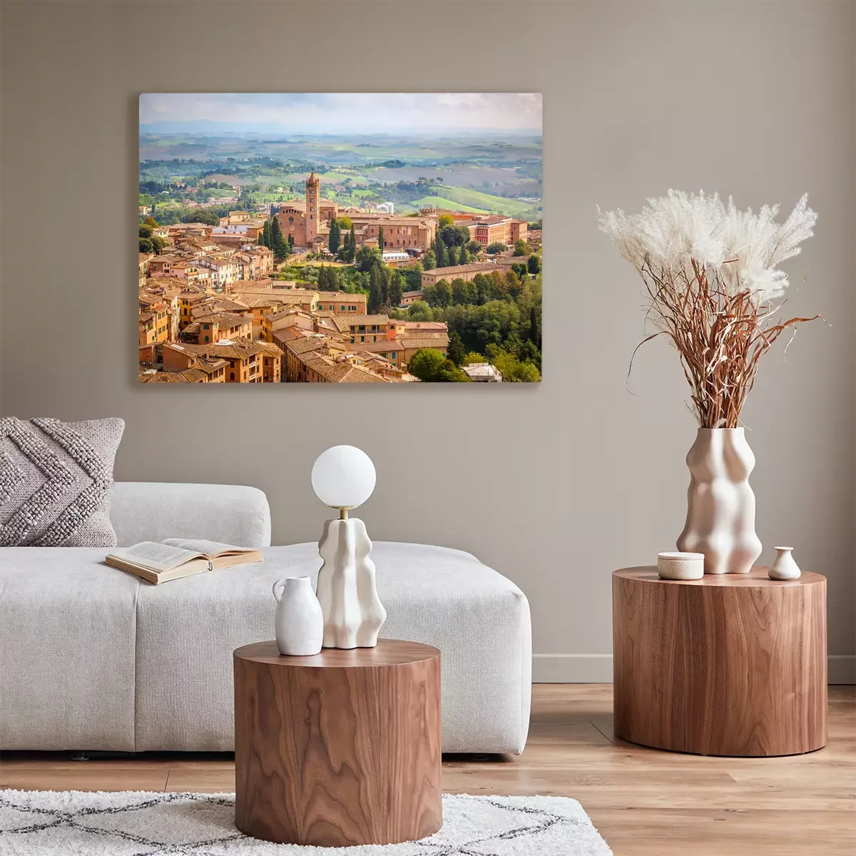 De print wordt aangebracht op hoogwaardig canvas dat op een schildersweefgetouw (spieraam) wordt gespannen. Omdat de print de zijranden bedekt, hoeft het ontwerp niet met een extra kader te worden omlijst. Wij raden ook composities aan die uit meerdere foto's bestaan en zo een coherente compositie vormen.