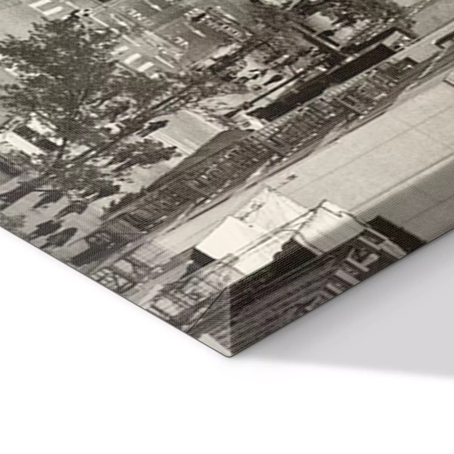 De print wordt aangebracht op hoogwaardig canvas dat op een schildersweefgetouw (spieraam) wordt gespannen. Omdat de print de zijranden bedekt, hoeft het ontwerp niet met een extra kader te worden omlijst. Wij raden ook composities aan die uit meerdere foto's bestaan en zo een coherente compositie vormen.