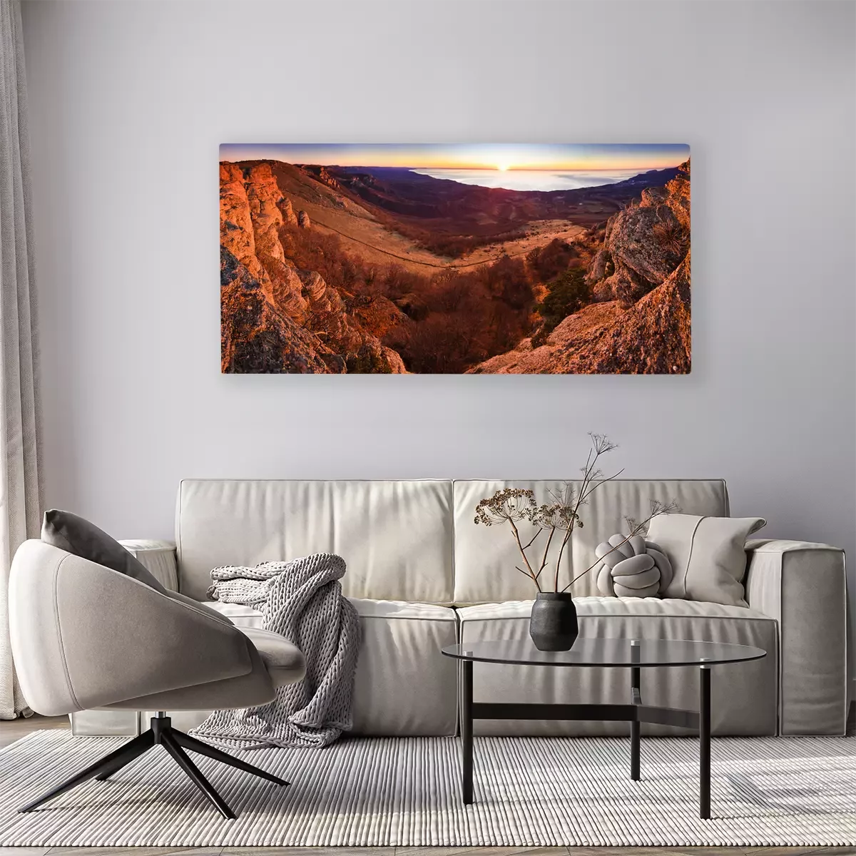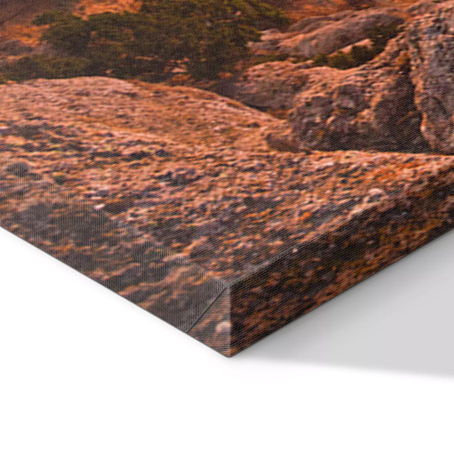 De print wordt aangebracht op hoogwaardig canvas dat op een schildersweefgetouw (spieraam) wordt gespannen. Omdat de print de zijranden bedekt, hoeft het ontwerp niet met een extra kader te worden omlijst. Wij raden ook composities aan die uit meerdere foto's bestaan en zo een coherente compositie vormen.