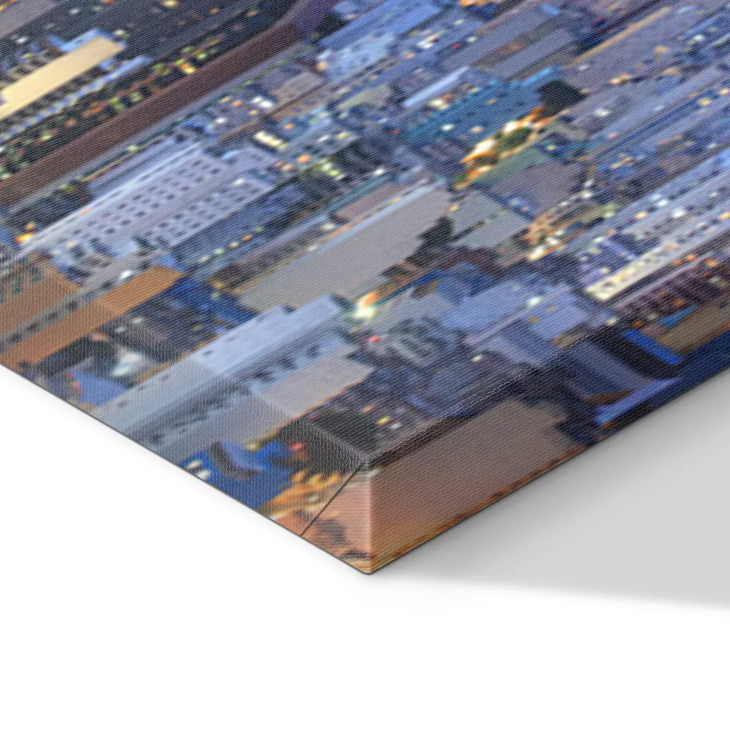 De print wordt aangebracht op hoogwaardig canvas dat op een schildersweefgetouw (spieraam) wordt gespannen. Omdat de print de zijranden bedekt, hoeft het ontwerp niet met een extra kader te worden omlijst. Wij raden ook composities aan die uit meerdere foto's bestaan en zo een coherente compositie vormen.