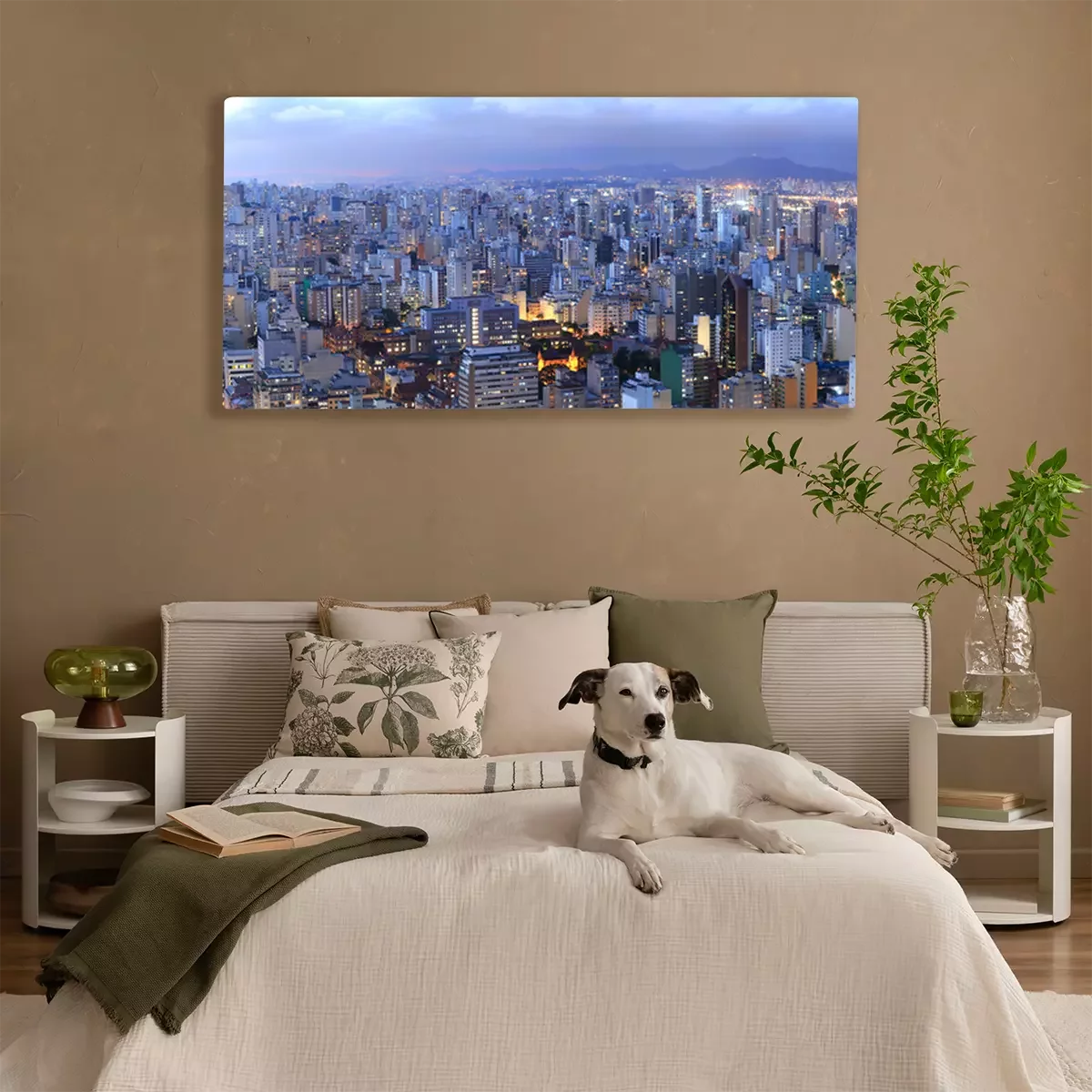 Canvas: Luchtfoto van Sao Paulo in de nacht de tijd