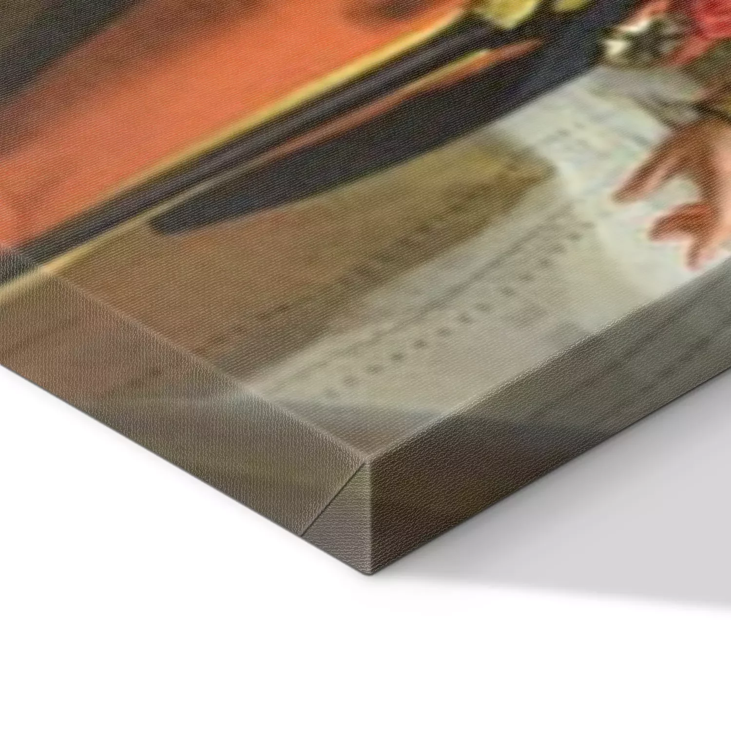 De print wordt aangebracht op hoogwaardig canvas dat op een schildersweefgetouw (spieraam) wordt gespannen. Omdat de print de zijranden bedekt, hoeft het ontwerp niet met een extra kader te worden omlijst. Wij raden ook composities aan die uit meerdere foto's bestaan en zo een coherente compositie vormen.