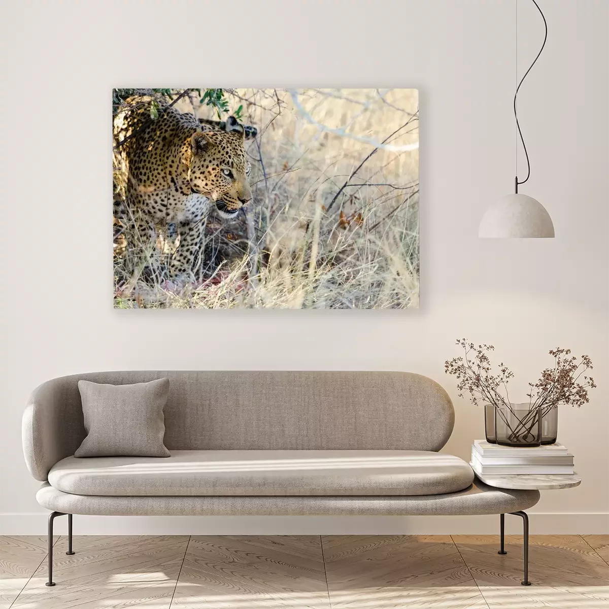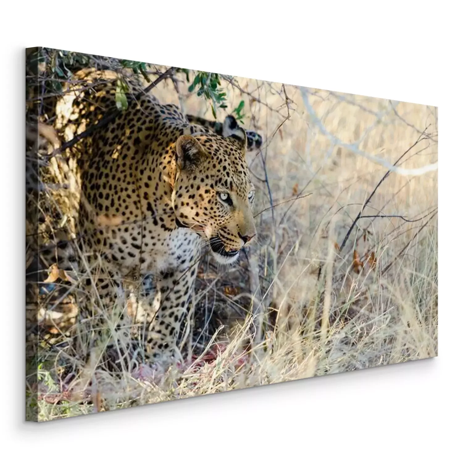 Canvas: Luipaard (Panthera pardus) met zijn prooi onder een boom