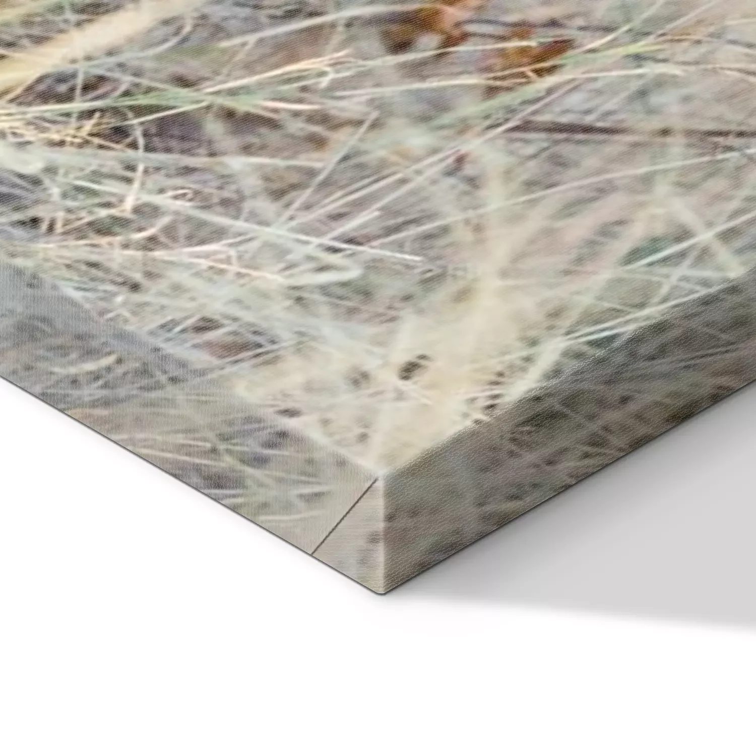 De print wordt aangebracht op hoogwaardig canvas dat op een schildersweefgetouw (spieraam) wordt gespannen. Omdat de print de zijranden bedekt, hoeft het ontwerp niet met een extra kader te worden omlijst. Wij raden ook composities aan die uit meerdere foto's bestaan en zo een coherente compositie vormen.