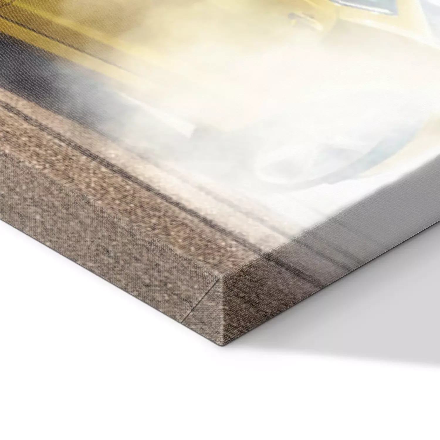 De print wordt aangebracht op hoogwaardig canvas dat op een schildersweefgetouw (spieraam) wordt gespannen. Omdat de print de zijranden bedekt, hoeft het ontwerp niet met een extra kader te worden omlijst. Wij raden ook composities aan die uit meerdere foto's bestaan en zo een coherente compositie vormen.