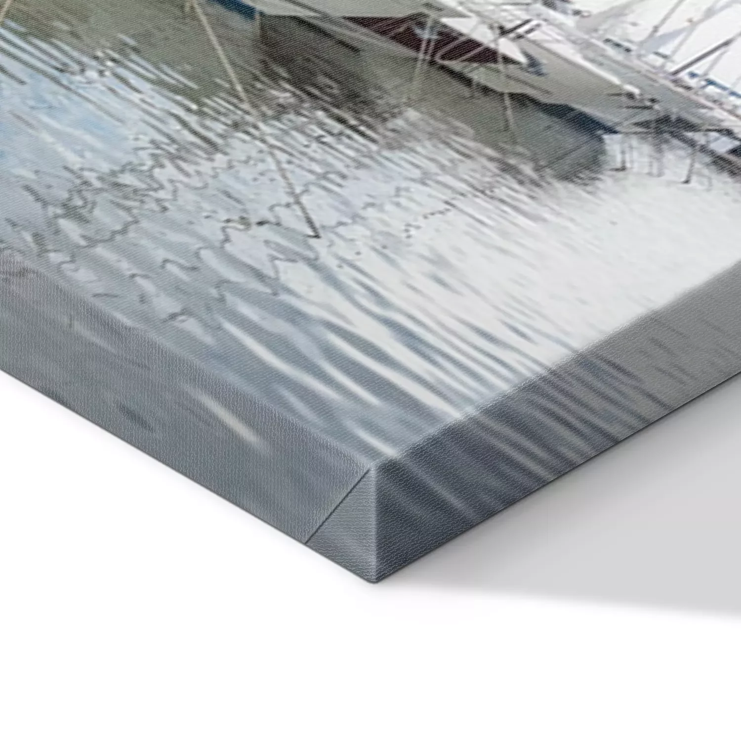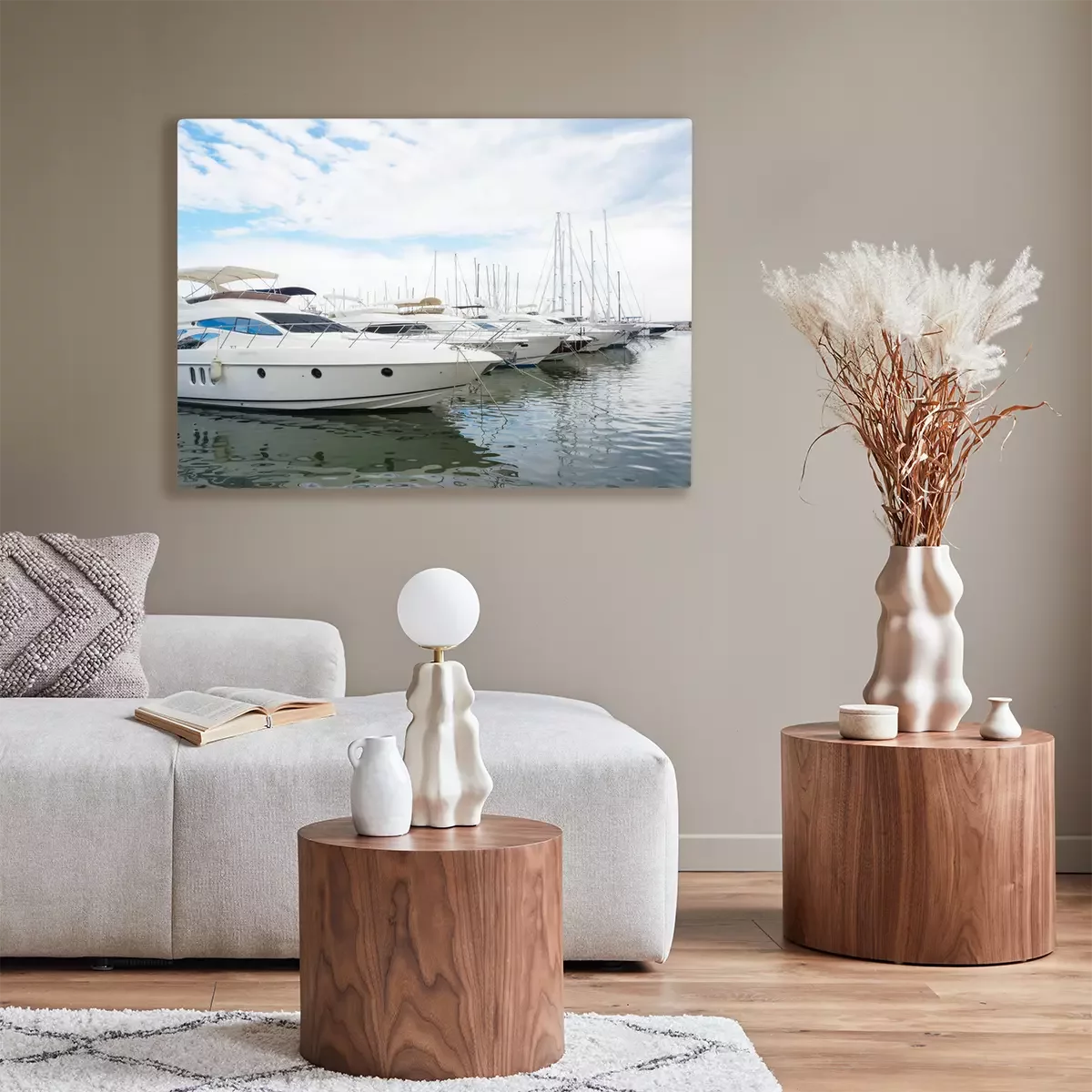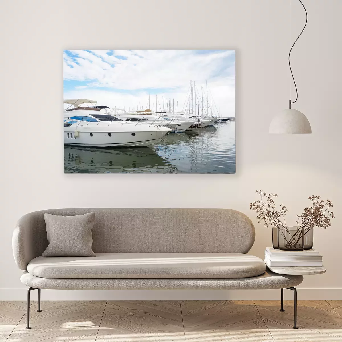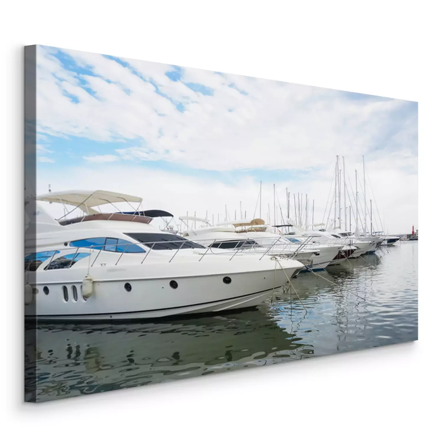 Canvas: luxe jachten geparkeerd in een baai aan de zee