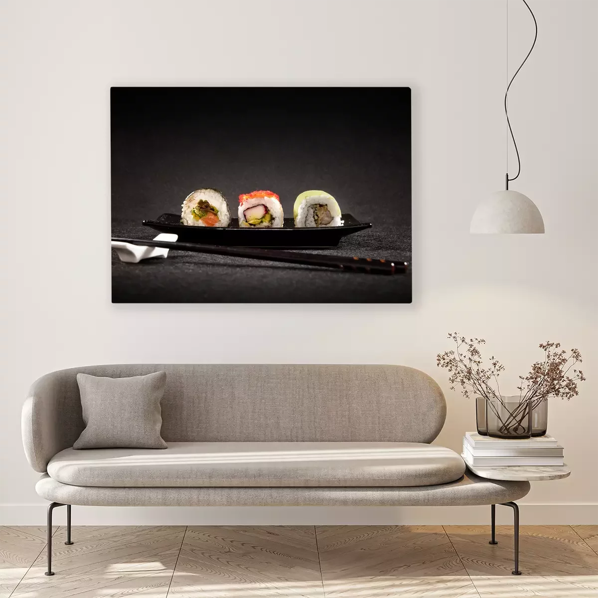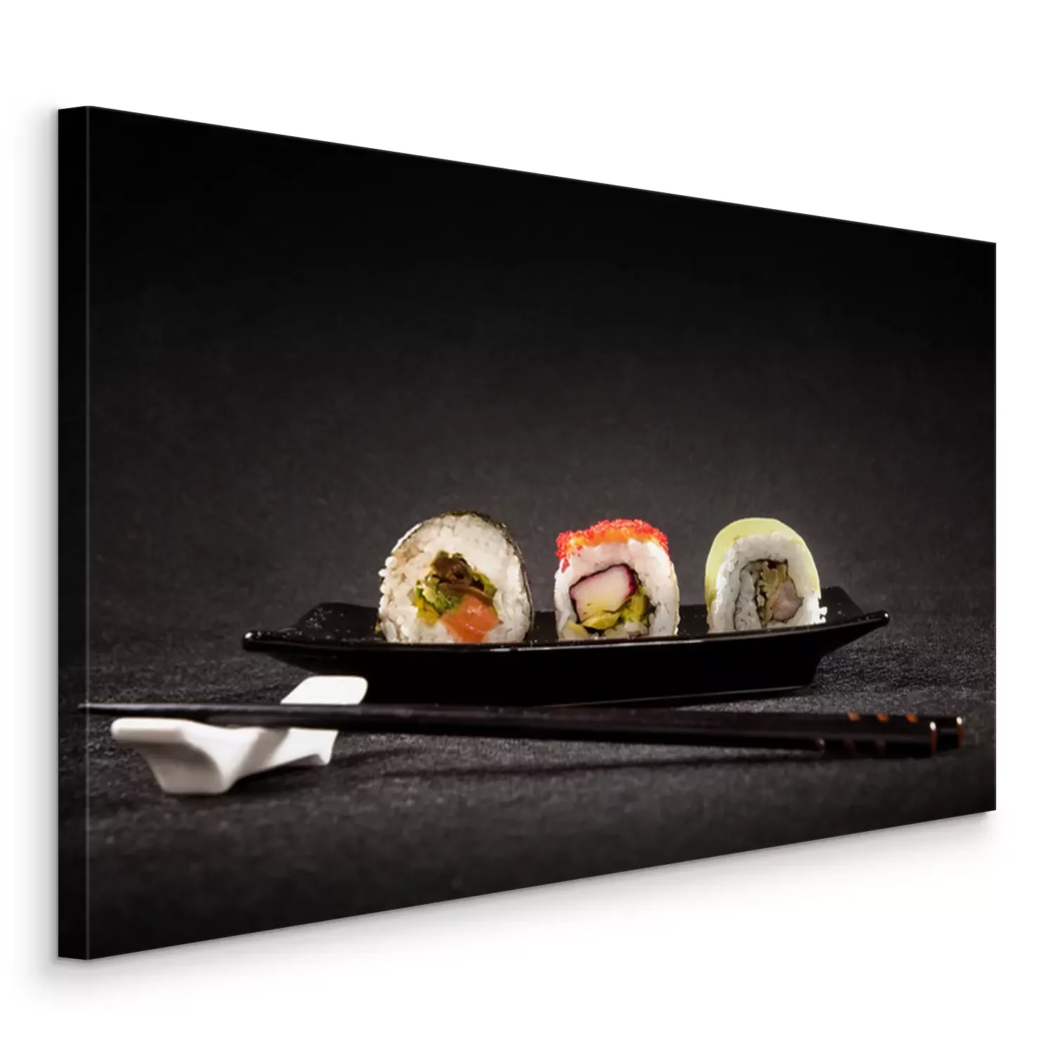 Canvas Luxe sushi op een zwarte achtergrond - Japanse keuken