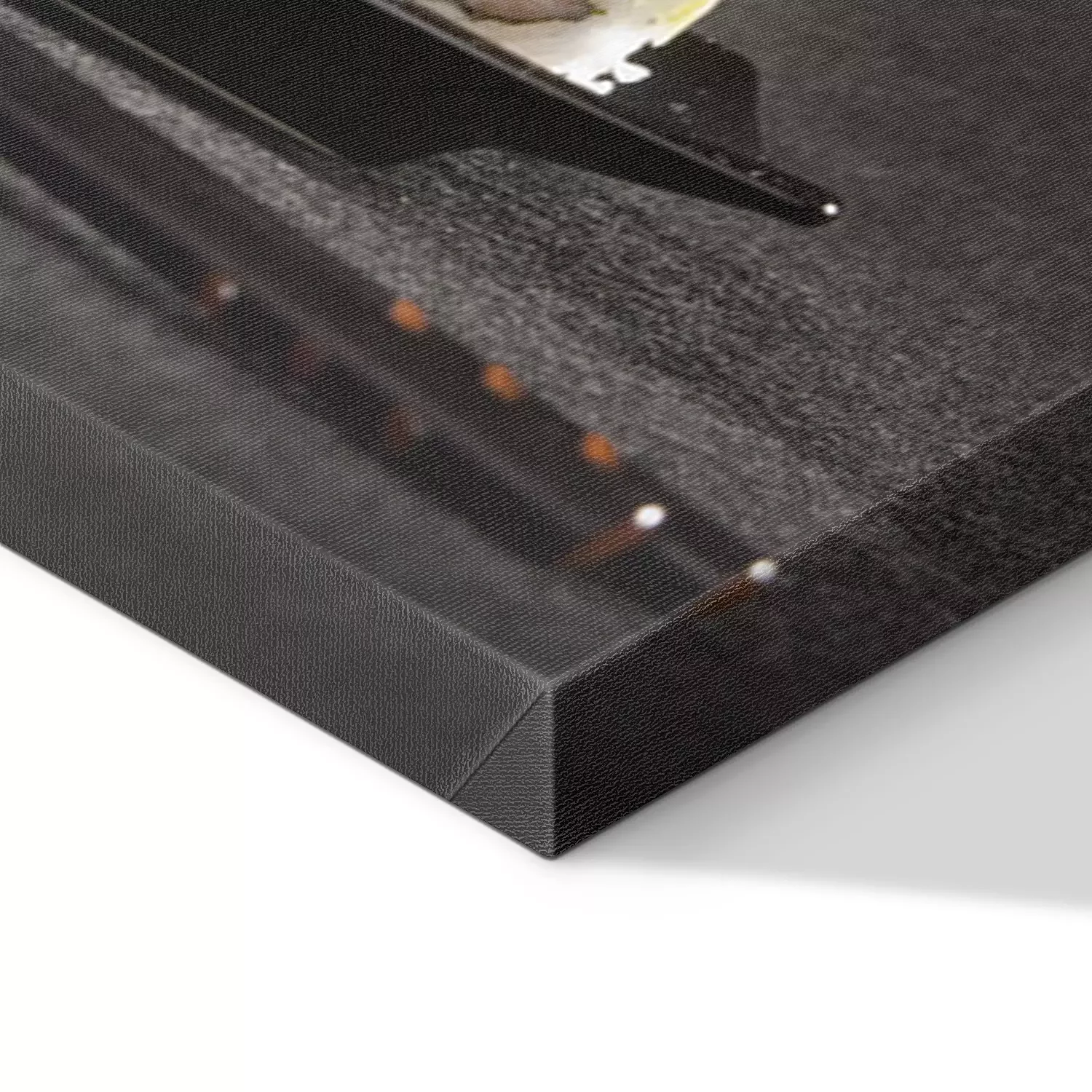 De print wordt aangebracht op hoogwaardig canvas dat op een schildersweefgetouw (spieraam) wordt gespannen. Omdat de print de zijranden bedekt, hoeft het ontwerp niet met een extra kader te worden omlijst. Wij raden ook composities aan die uit meerdere foto's bestaan en zo een coherente compositie vormen.