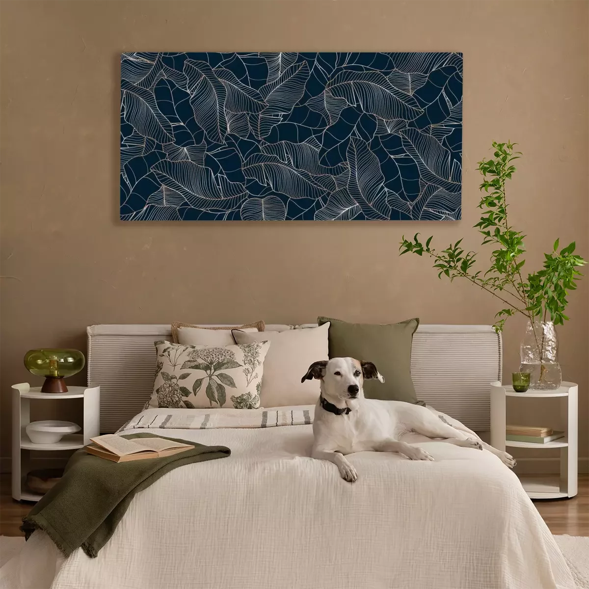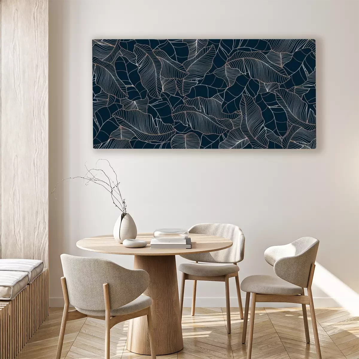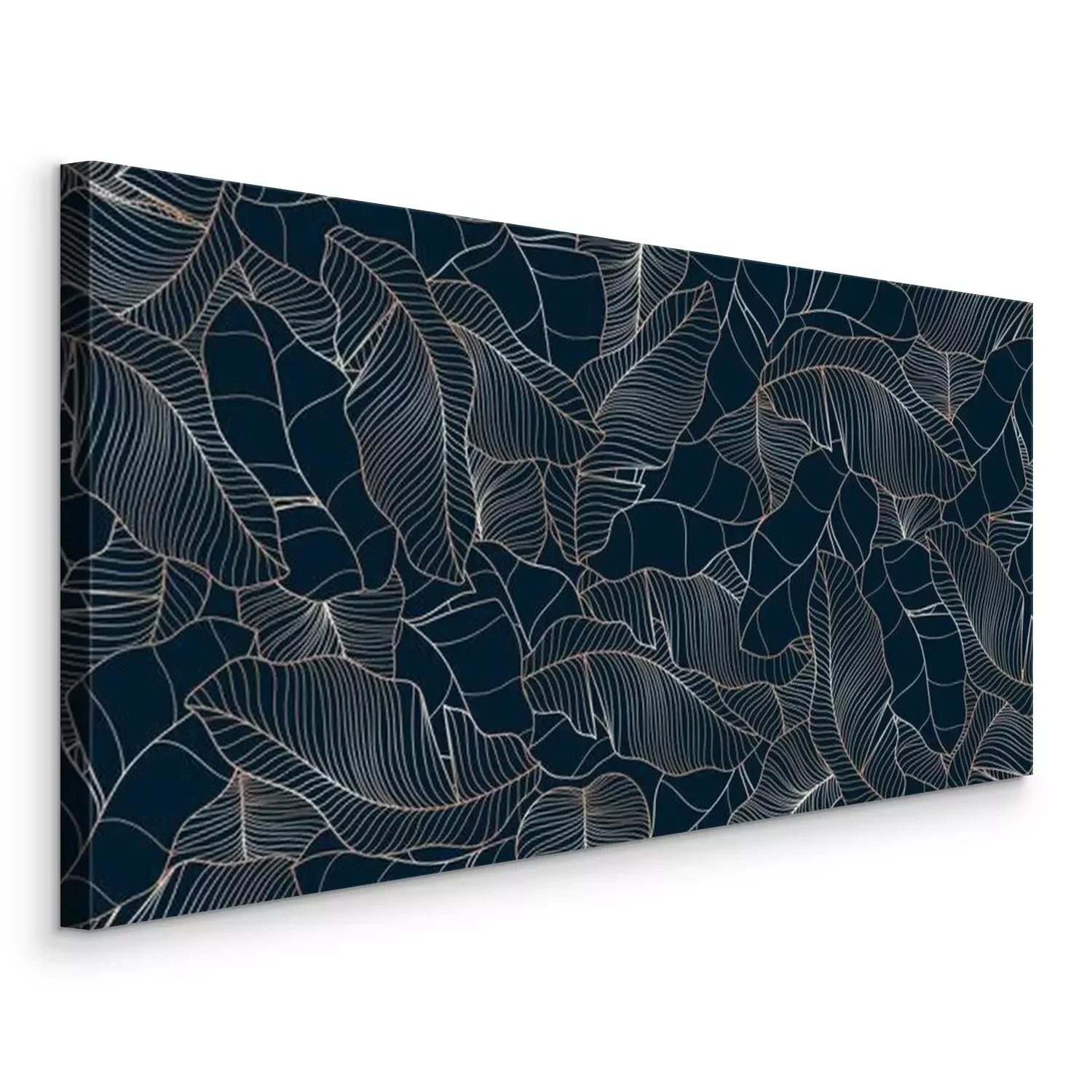 Canvas Luxury gold natural leaf background vector. Banana leaf line arts wallpaper vector illustration.