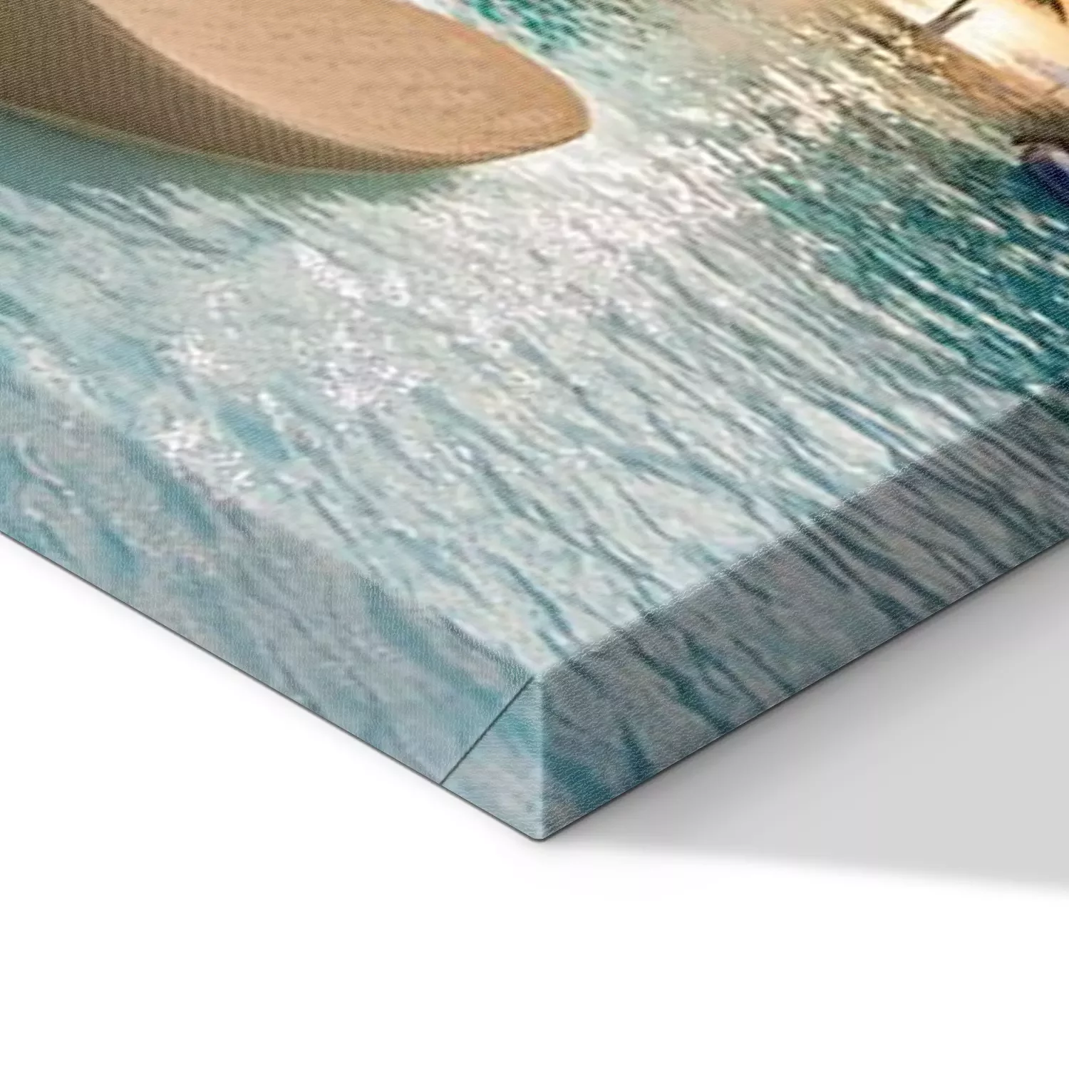 De print wordt aangebracht op hoogwaardig canvas dat op een schildersweefgetouw (spieraam) wordt gespannen. Omdat de print de zijranden bedekt, hoeft het ontwerp niet met een extra kader te worden omlijst. Wij raden ook composities aan die uit meerdere foto's bestaan en zo een coherente compositie vormen.
