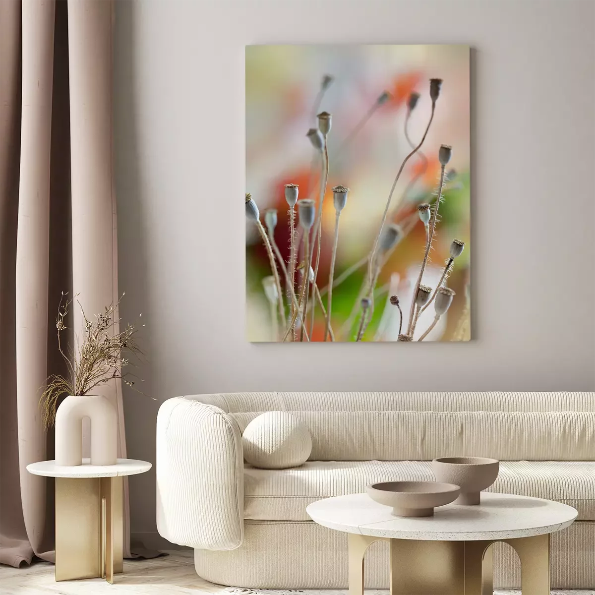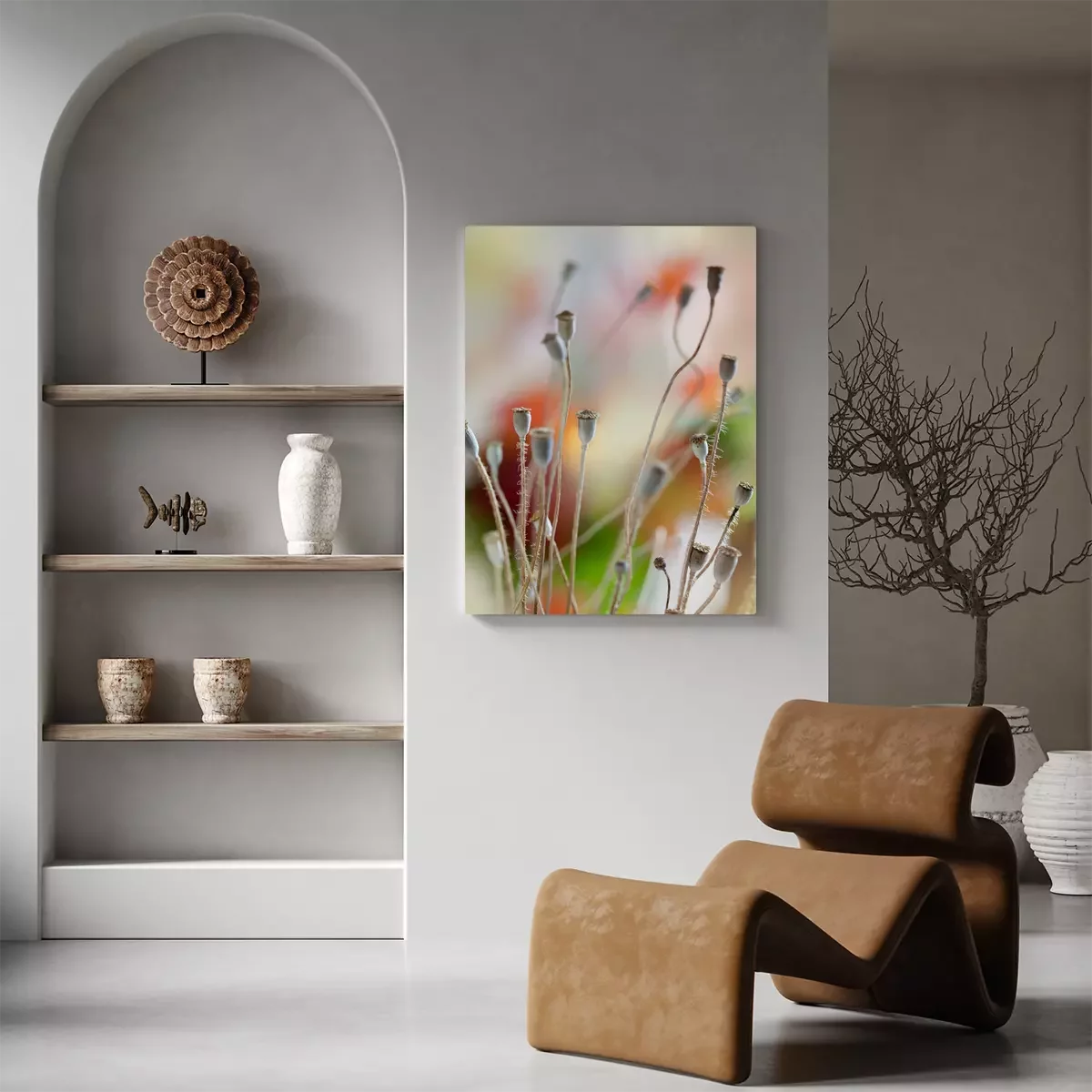 De print wordt aangebracht op hoogwaardig canvas dat op een schildersweefgetouw (spieraam) wordt gespannen. Omdat de print de zijranden bedekt, hoeft het ontwerp niet met een extra kader te worden omlijst. Wij raden ook composities aan die uit meerdere foto's bestaan en zo een coherente compositie vormen.