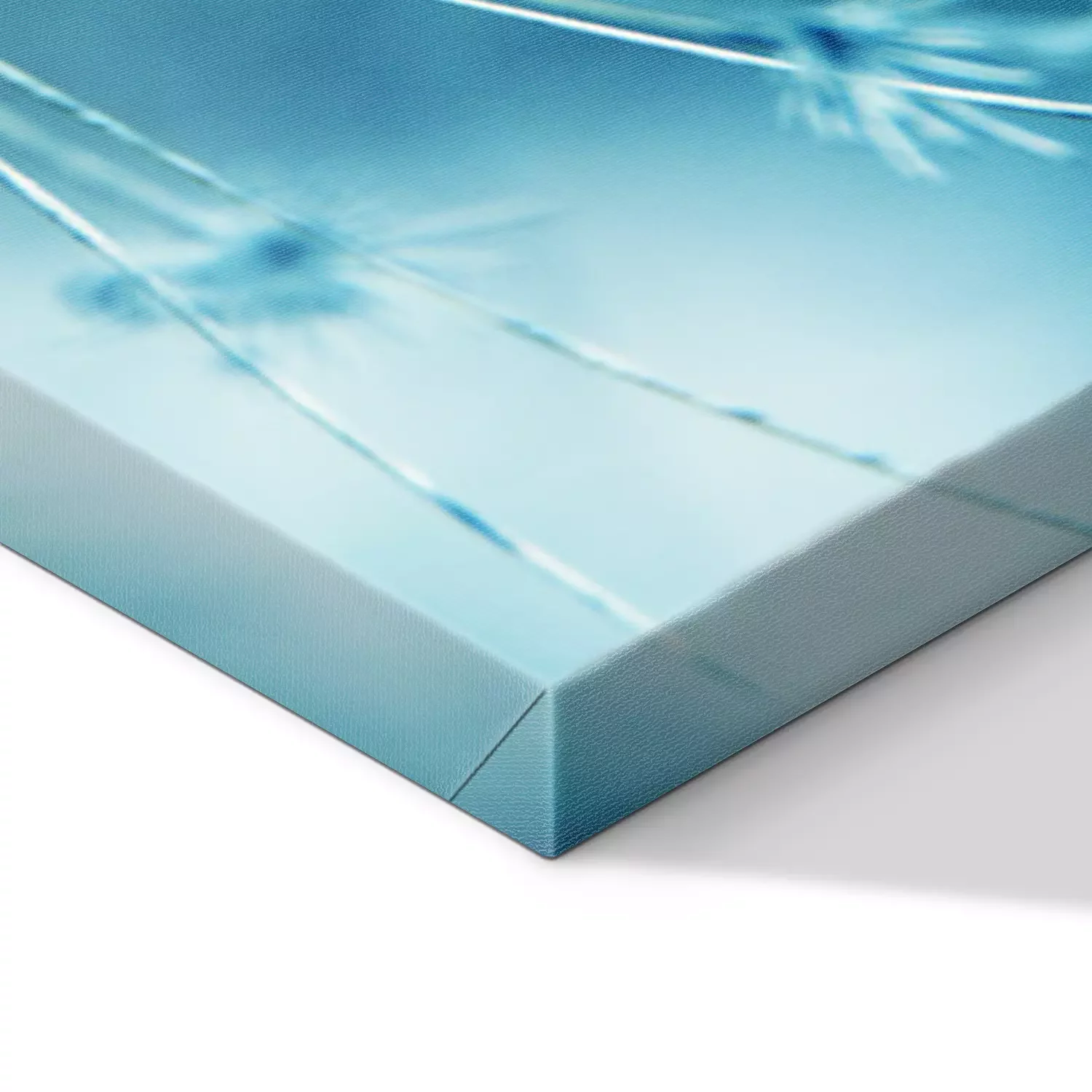 De print wordt aangebracht op hoogwaardig canvas dat op een schildersweefgetouw (spieraam) wordt gespannen. Omdat de print de zijranden bedekt, hoeft het ontwerp niet met een extra kader te worden omlijst. Wij raden ook composities aan die uit meerdere foto's bestaan en zo een coherente compositie vormen.