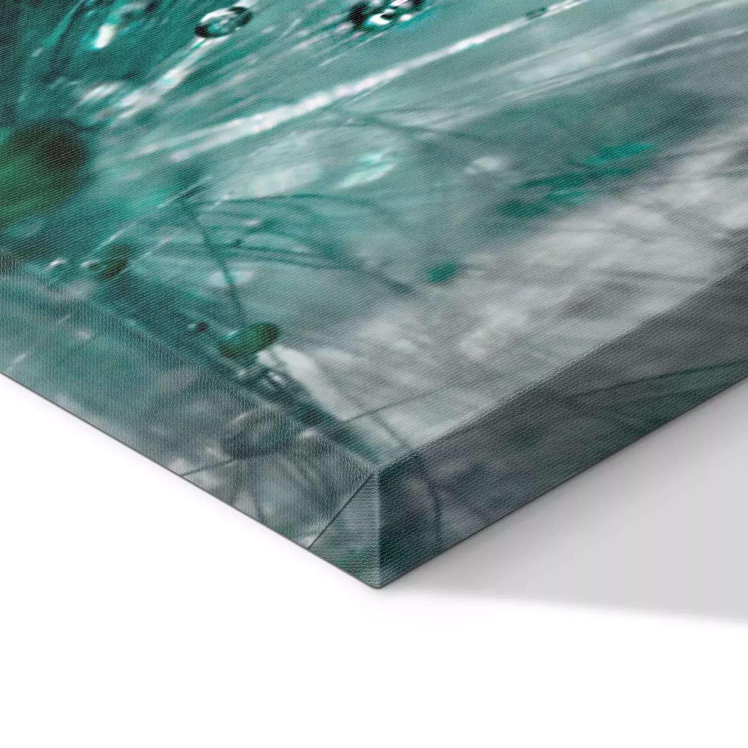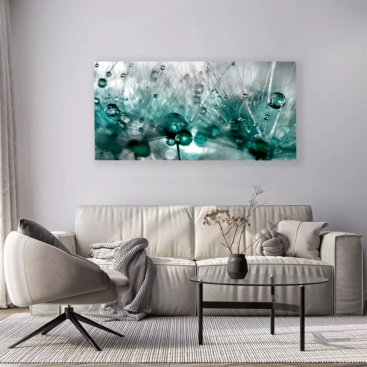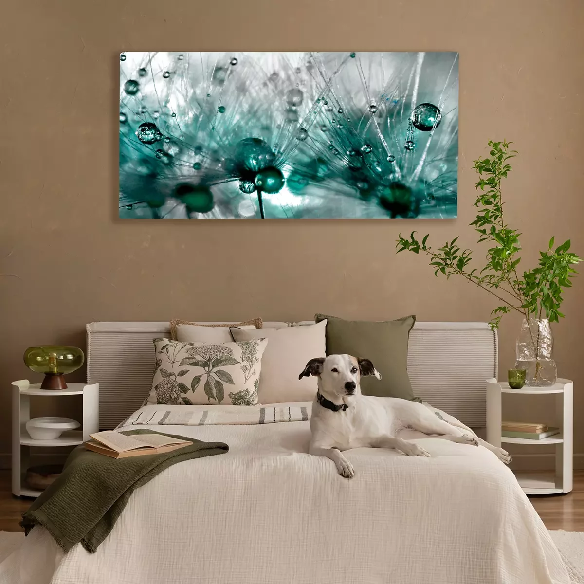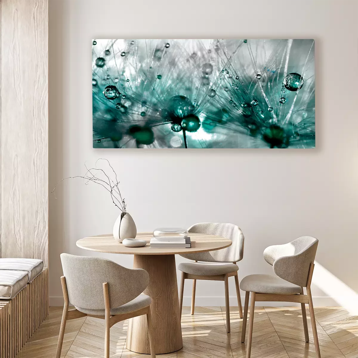 Macro-opname van een paardenbloem met waterdruppels in het groen