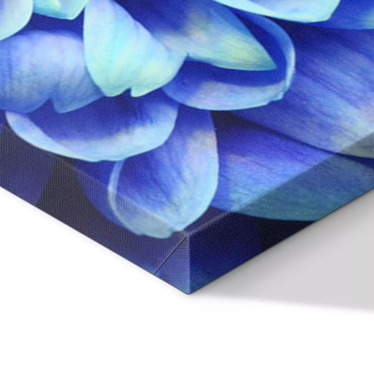 De print wordt aangebracht op hoogwaardig canvas dat op een schildersweefgetouw (spieraam) wordt gespannen. Omdat de print de zijranden bedekt, hoeft het ontwerp niet met een extra kader te worden omlijst. Wij raden ook composities aan die uit meerdere foto's bestaan en zo een coherente compositie vormen.