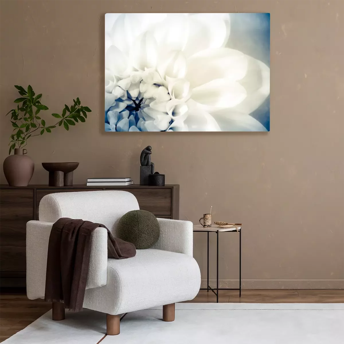 De print wordt aangebracht op hoogwaardig canvas dat op een schildersweefgetouw (spieraam) wordt gespannen. Omdat de print de zijranden bedekt, hoeft het ontwerp niet met een extra kader te worden omlijst. Wij raden ook composities aan die uit meerdere foto's bestaan en zo een coherente compositie vormen.