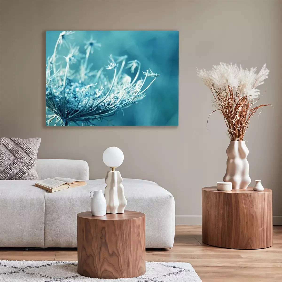 De print wordt aangebracht op hoogwaardig canvas dat op een schildersweefgetouw (spieraam) wordt gespannen. Omdat de print de zijranden bedekt, hoeft het ontwerp niet met een extra kader te worden omlijst. Wij raden ook composities aan die uit meerdere foto's bestaan en zo een coherente compositie vormen.