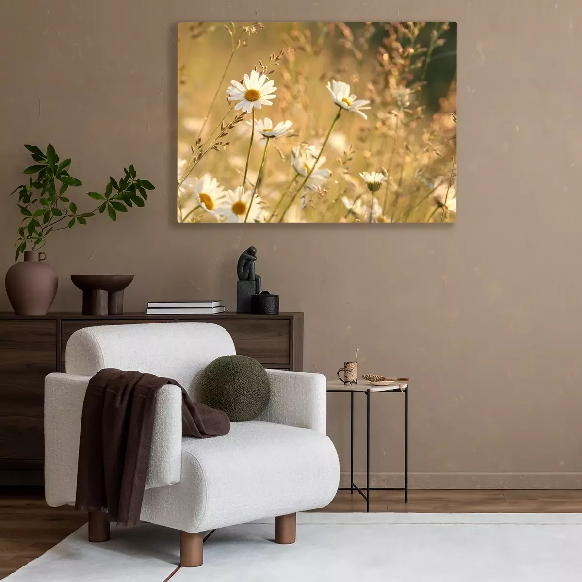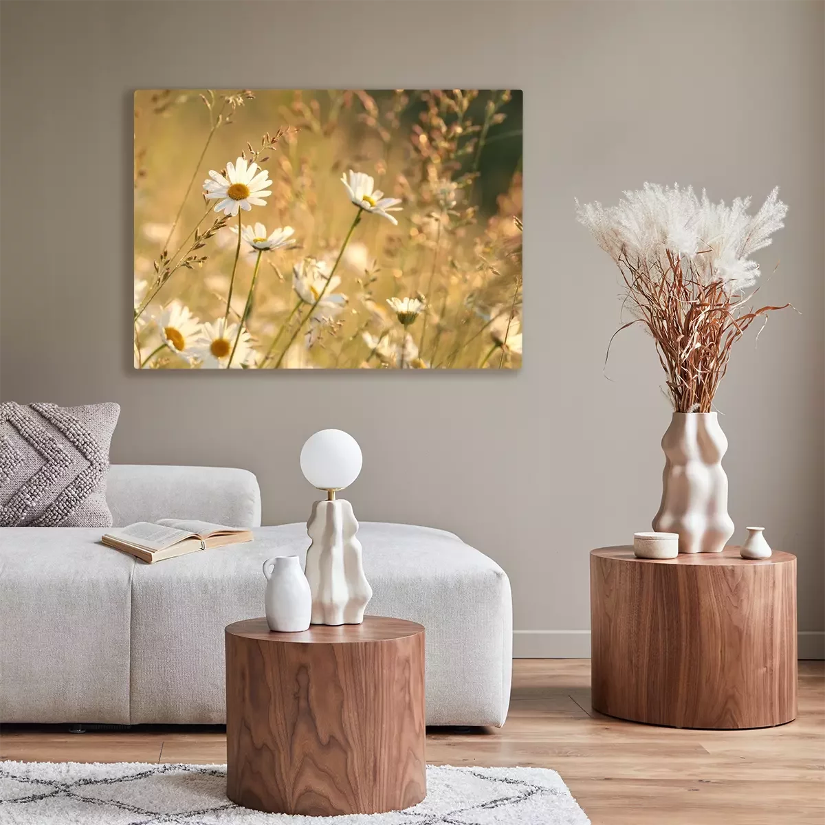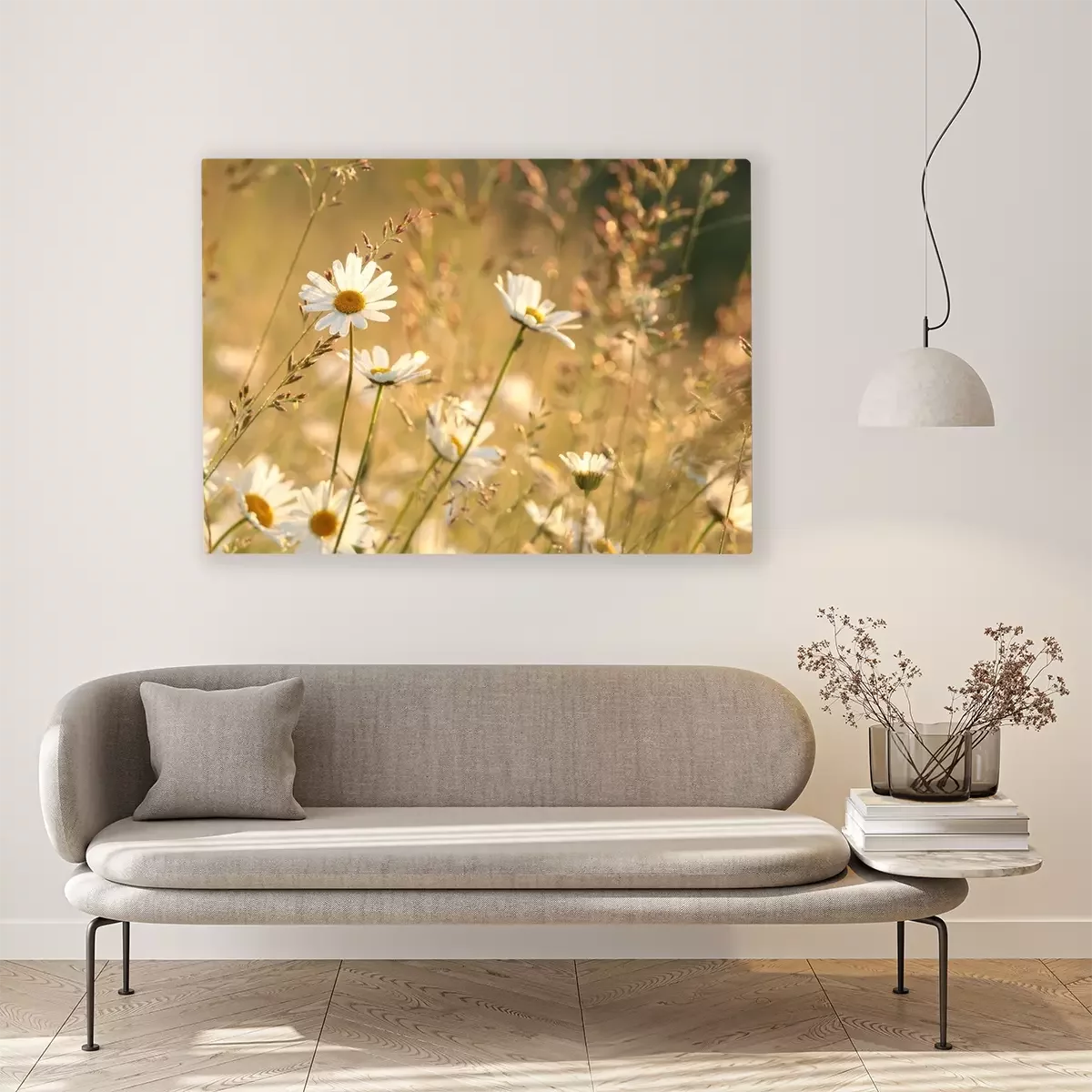 Canvas: Madeliefjes in de weide bij dageraad
