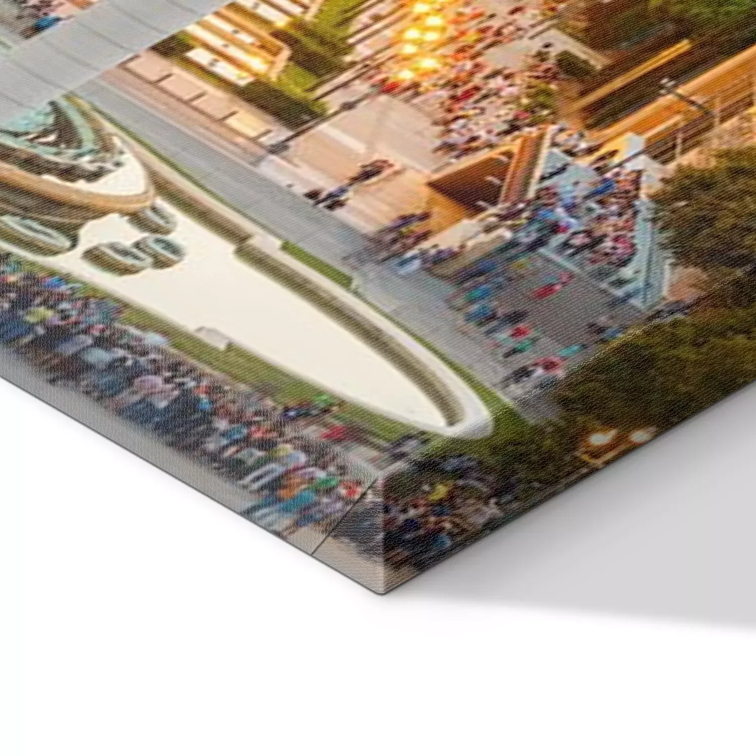 De print wordt aangebracht op hoogwaardig canvas dat op een schildersweefgetouw (spieraam) wordt gespannen. Omdat de print de zijranden bedekt, hoeft het ontwerp niet met een extra kader te worden omlijst. Wij raden ook composities aan die uit meerdere foto's bestaan en zo een coherente compositie vormen.