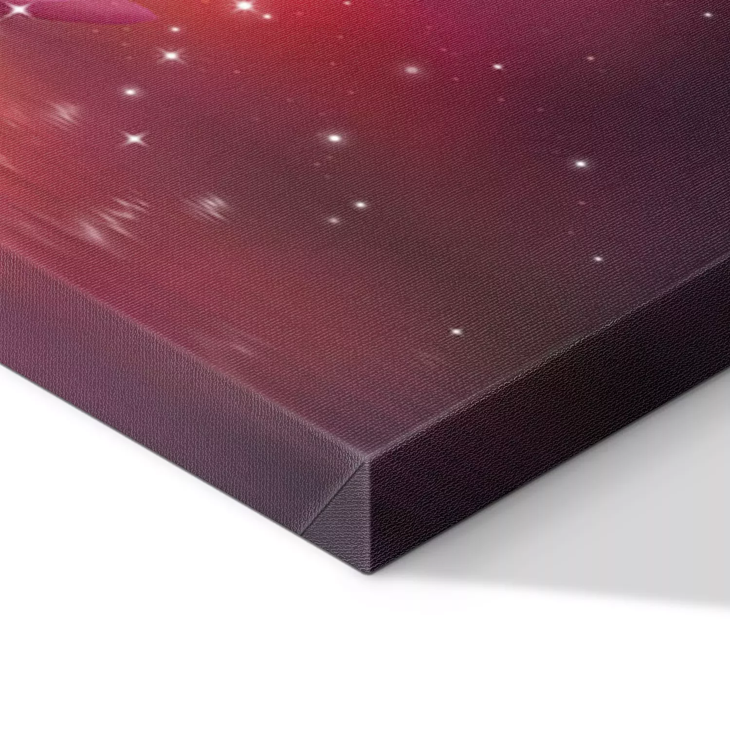 De print wordt aangebracht op hoogwaardig canvas dat op een schildersweefgetouw (spieraam) wordt gespannen. Omdat de print de zijranden bedekt, hoeft het ontwerp niet met een extra kader te worden omlijst. Wij raden ook composities aan die uit meerdere foto's bestaan en zo een coherente compositie vormen.