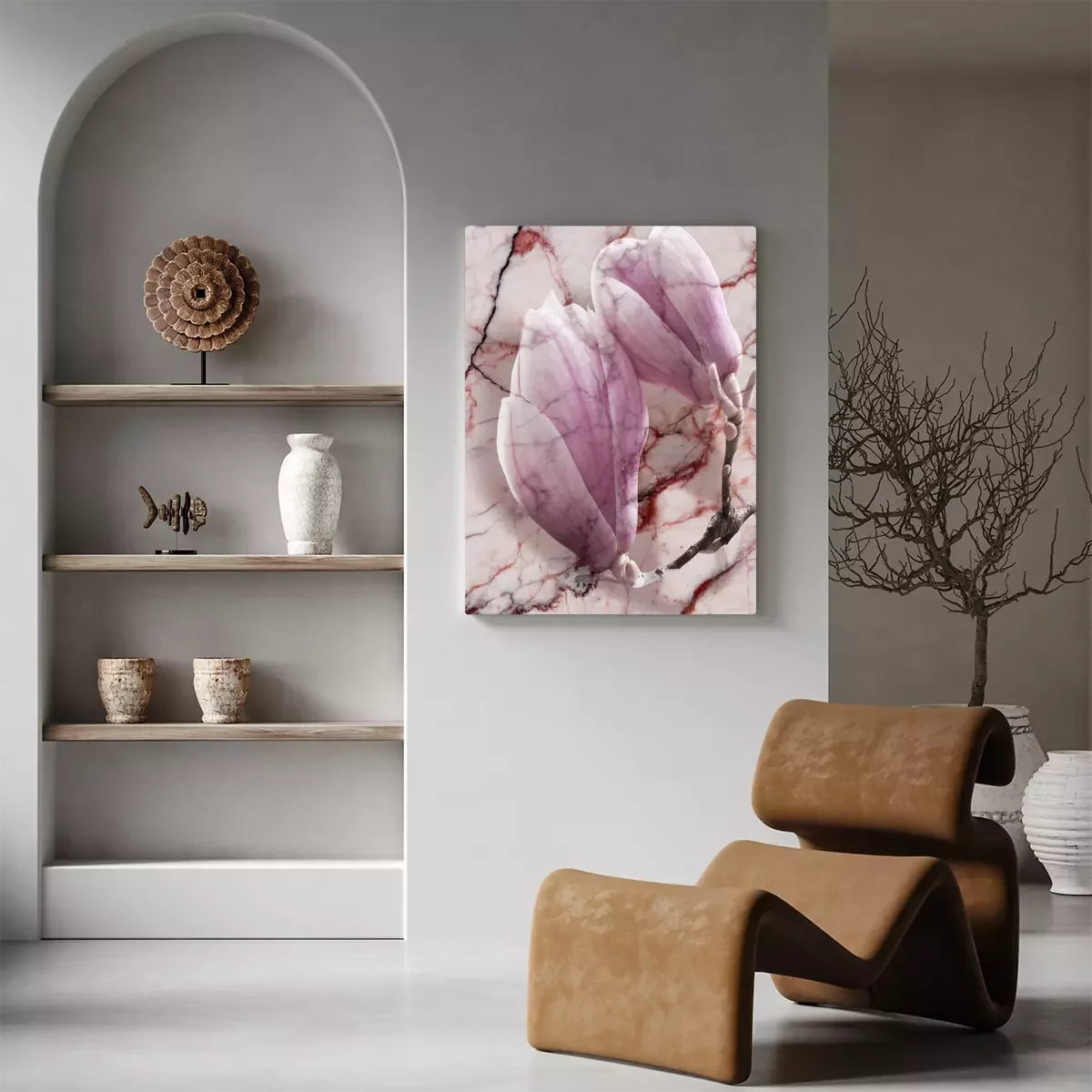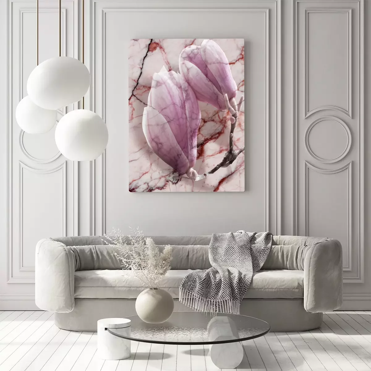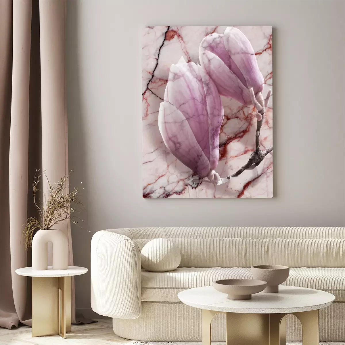 Magnolia's in roze tinten op een marmeren achtergrond