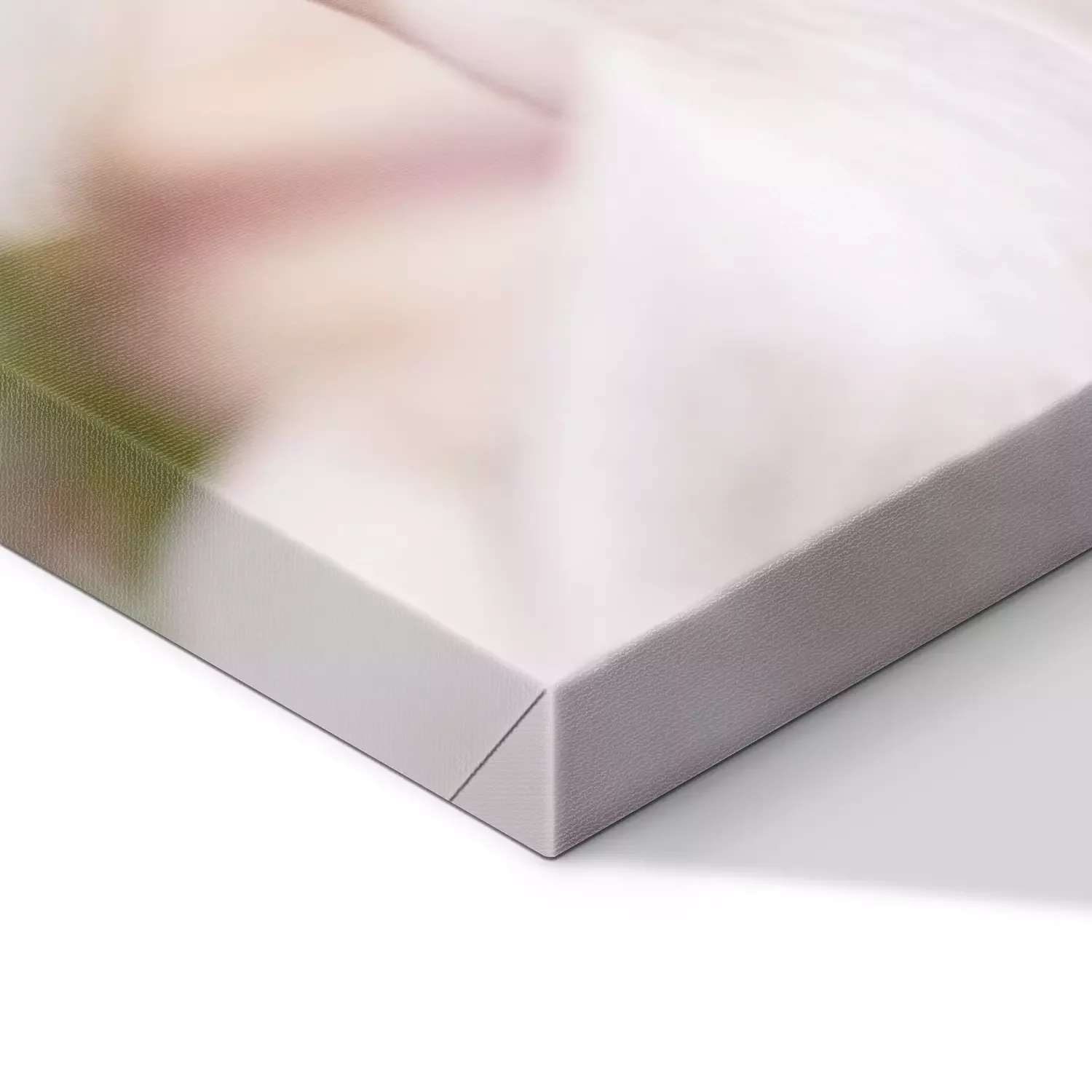 De print wordt aangebracht op hoogwaardig canvas dat op een schildersweefgetouw (spieraam) wordt gespannen. Omdat de print de zijranden bedekt, hoeft het ontwerp niet met een extra kader te worden omlijst. Wij raden ook composities aan die uit meerdere foto's bestaan en zo een coherente compositie vormen.