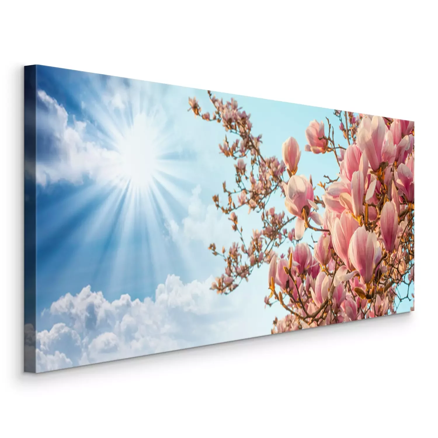 Canvas: Magnolia boom bloesem met kleurrijke hemel op de achtergrond