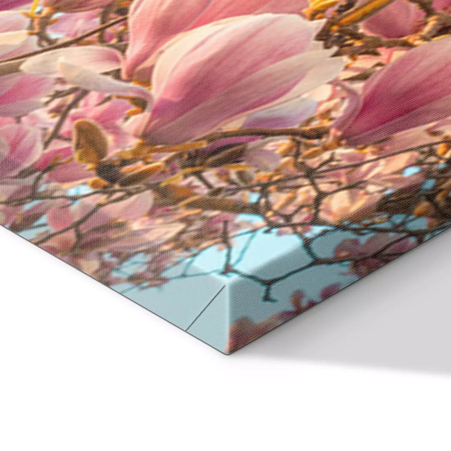 Canvas Magnolia boom bloesem met kleurrijke hemel op de achtergrond