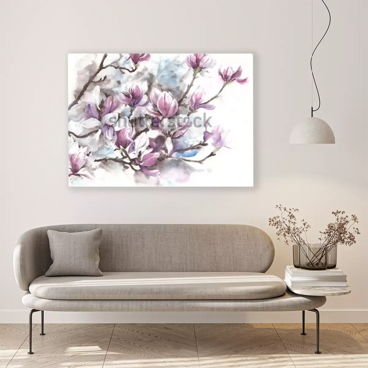 Canvas: Magnolia flowers blooming spring blossom magnolia tree watercolor painting