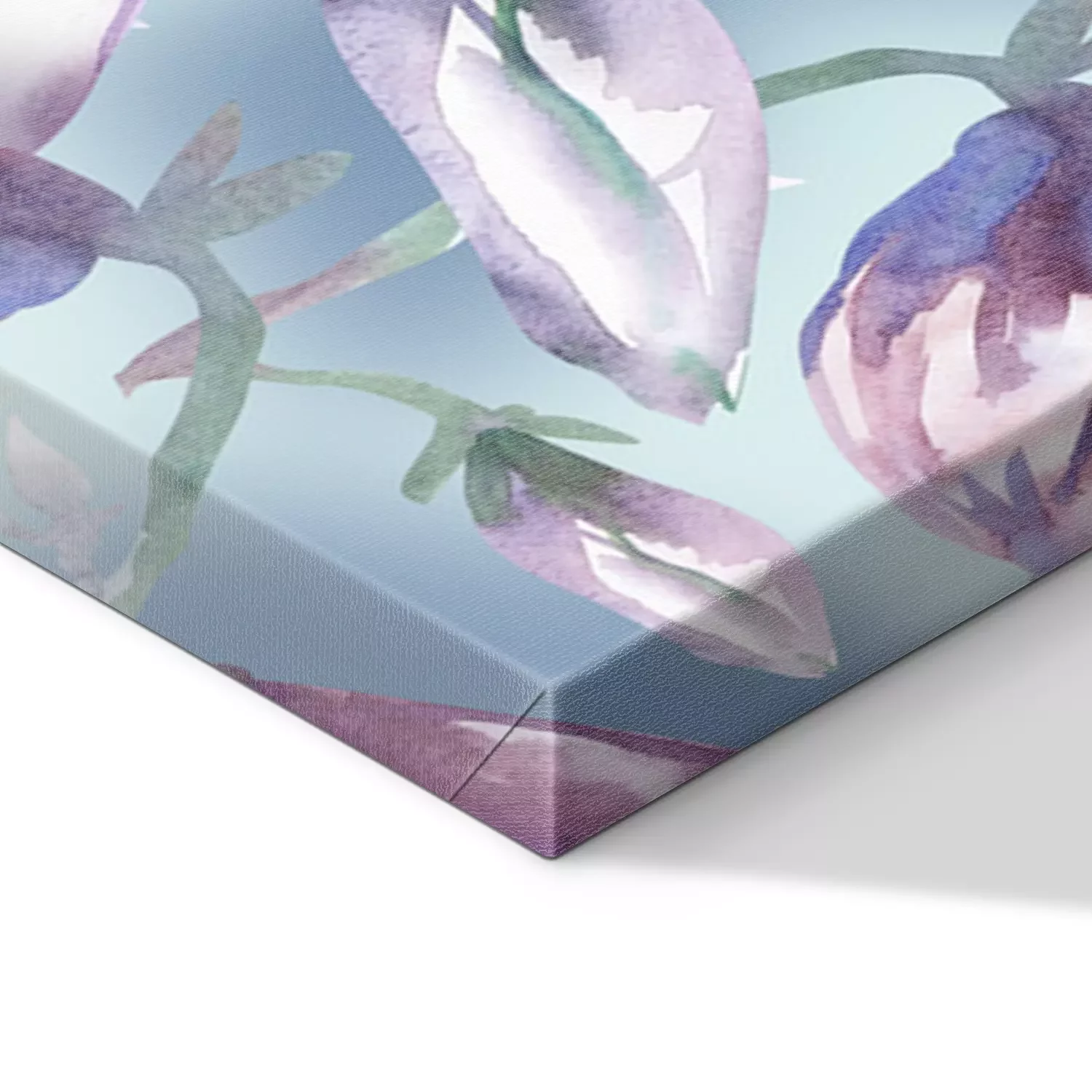 De print wordt aangebracht op hoogwaardig canvas dat op een schildersweefgetouw (spieraam) wordt gespannen. Omdat de print de zijranden bedekt, hoeft het ontwerp niet met een extra kader te worden omlijst. Wij raden ook composities aan die uit meerdere foto's bestaan en zo een coherente compositie vormen.