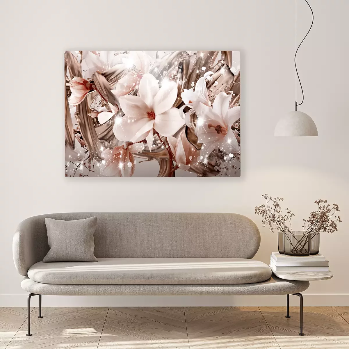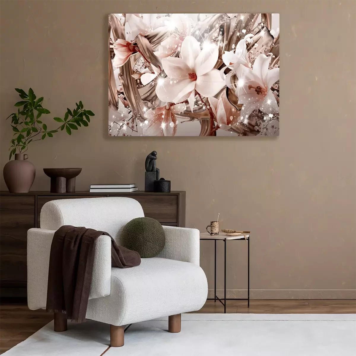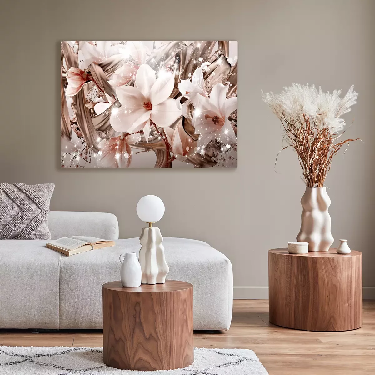 Magnoliabloemen in een abstracte compositie met lichtjes
