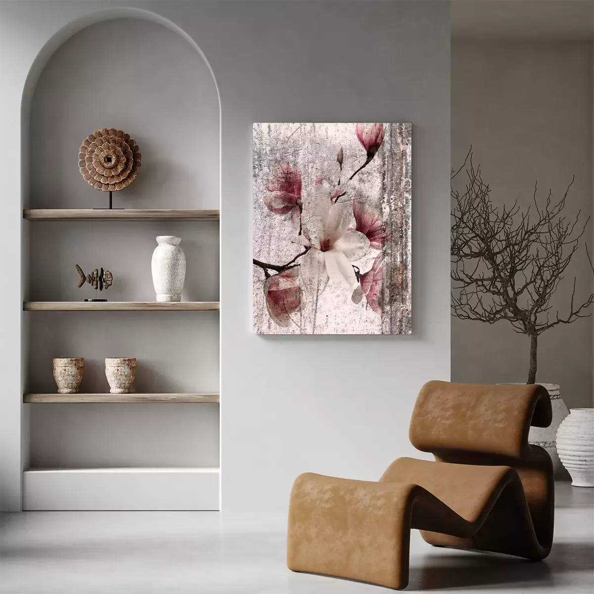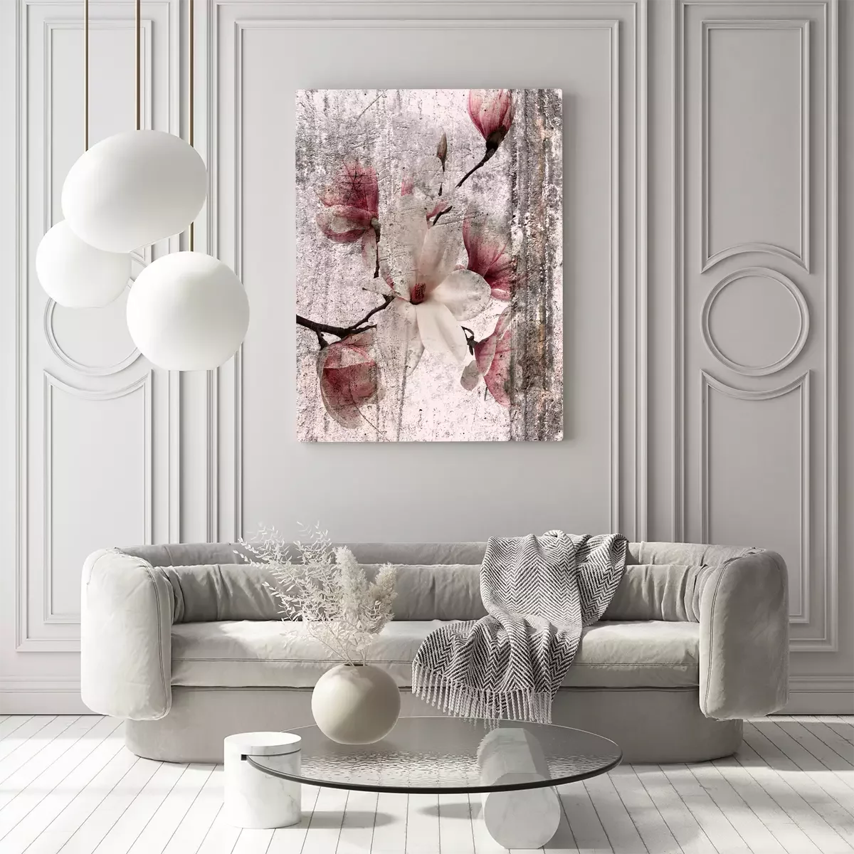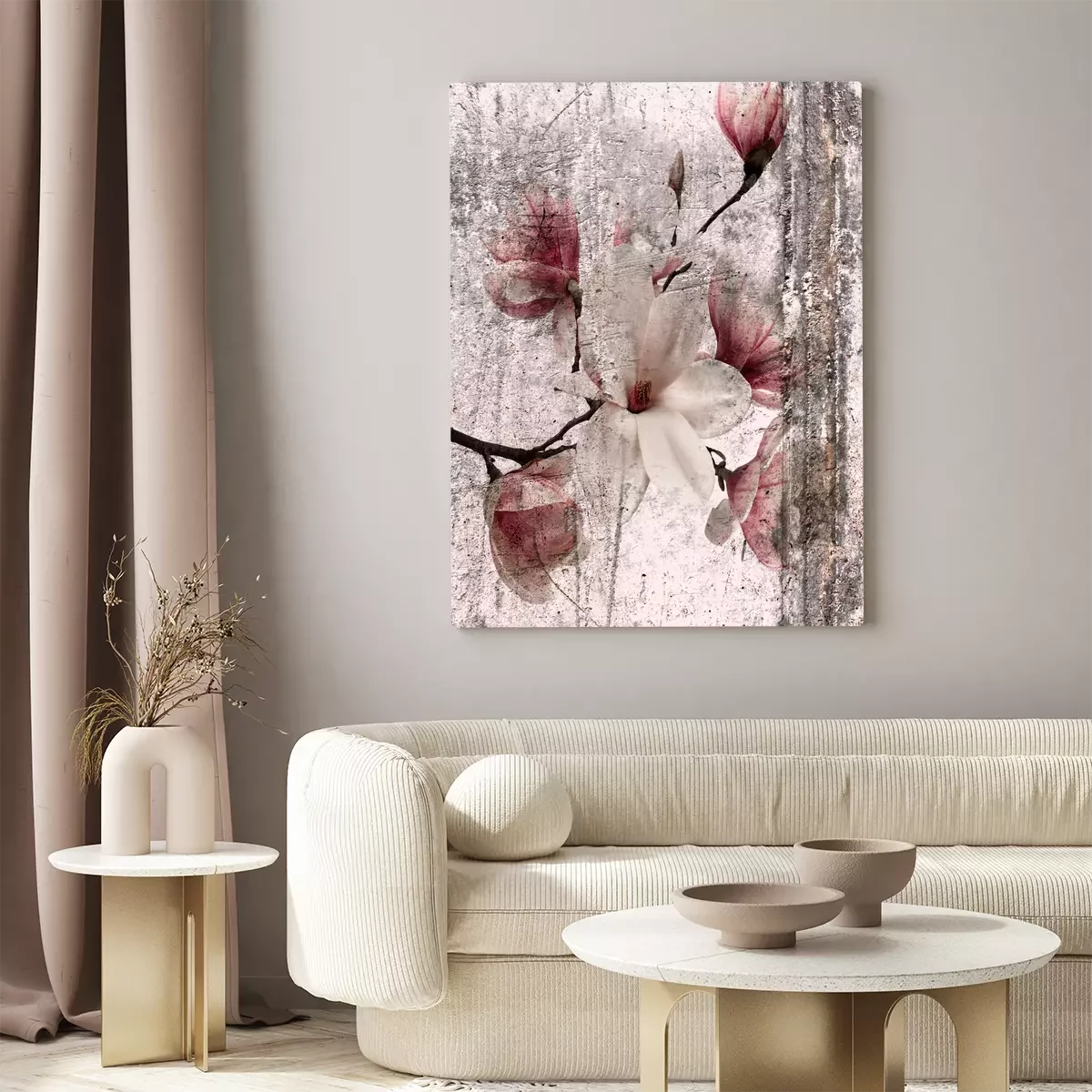 Magnoliabloemen in een wit en roze vintage arrangement