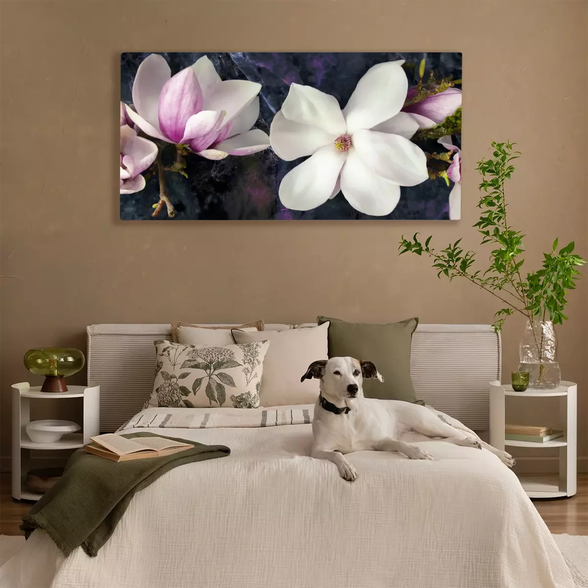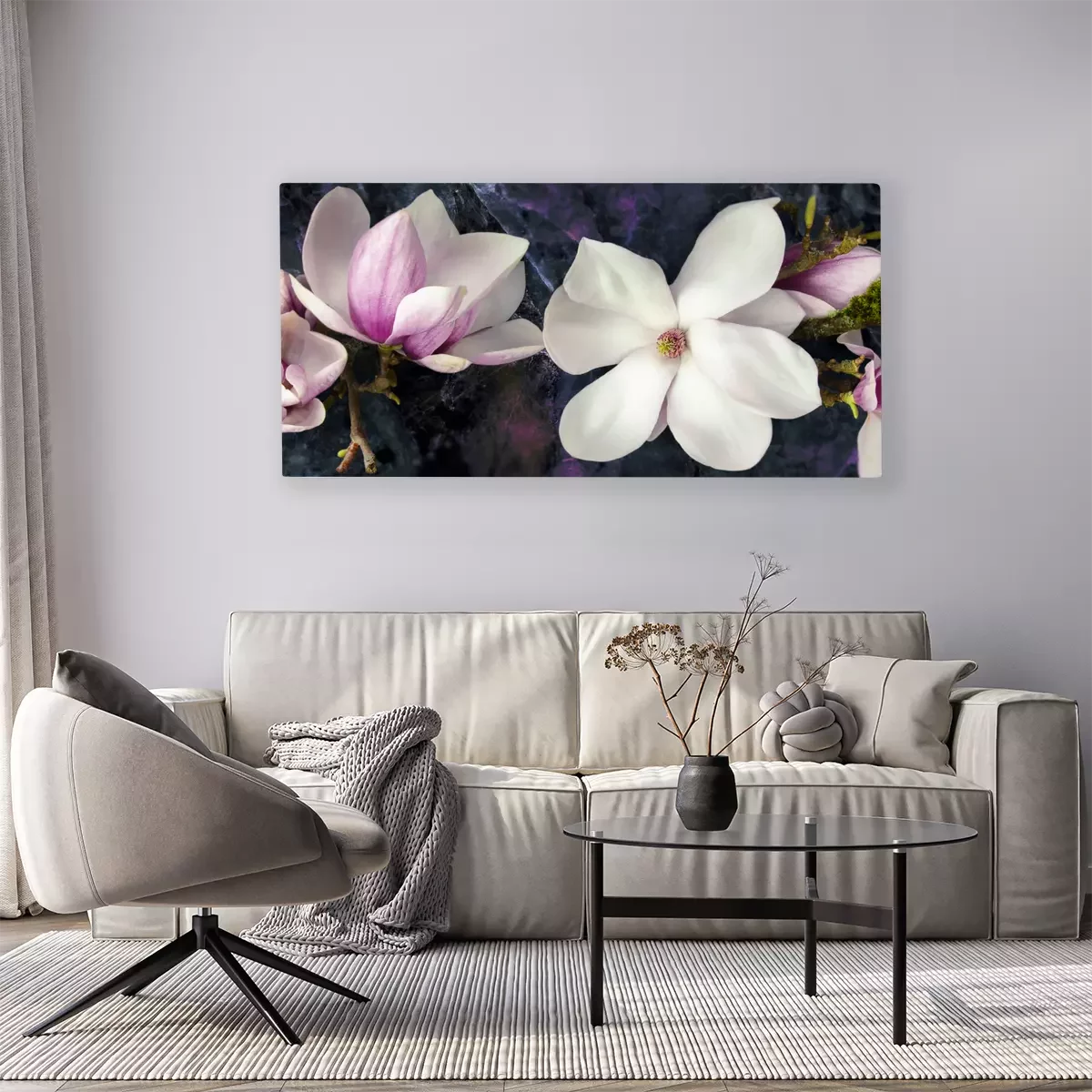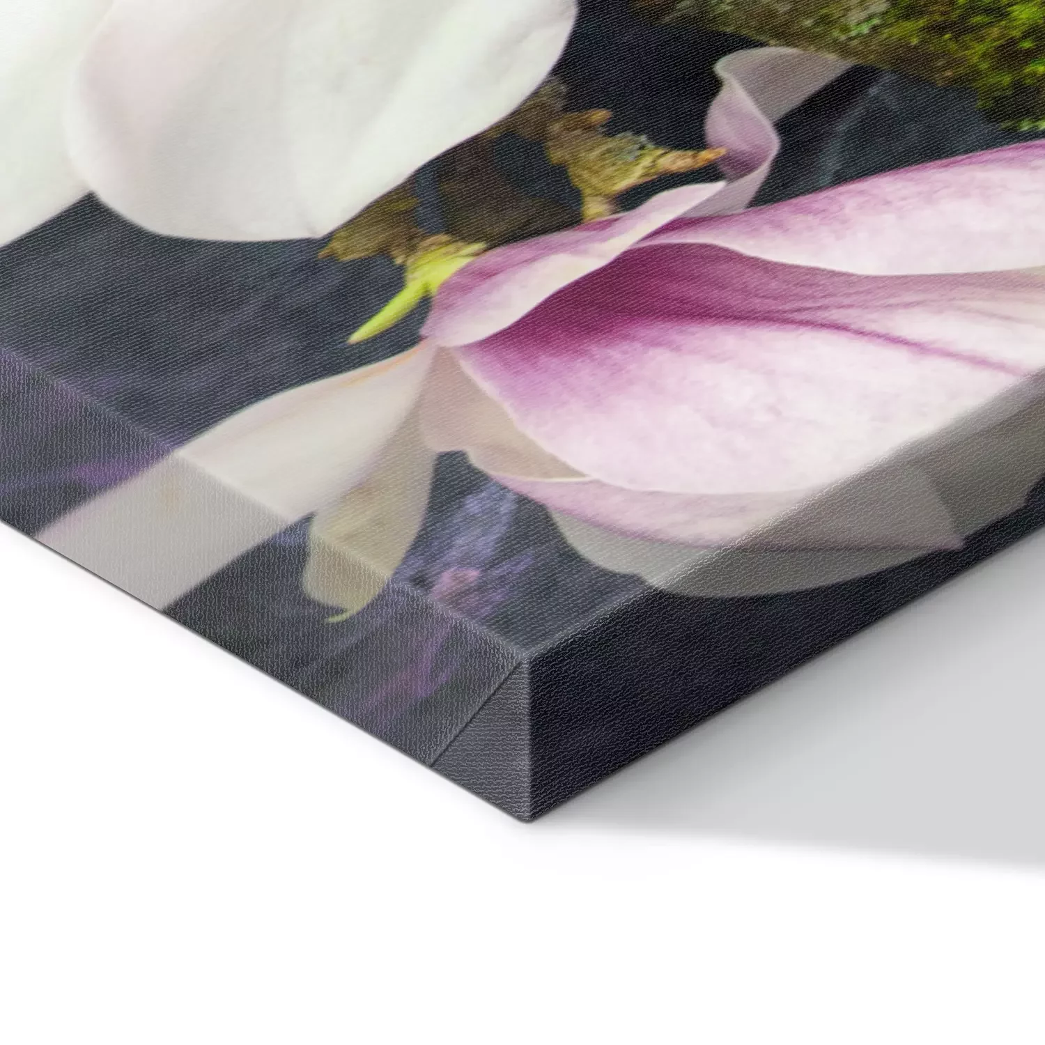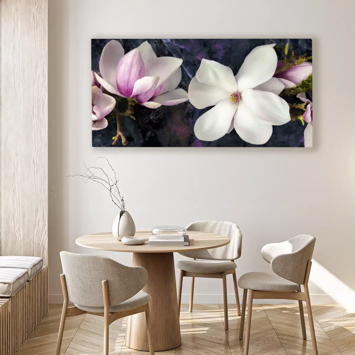 Magnoliabloemen in tinten roze en wit op een donkere achtergrond