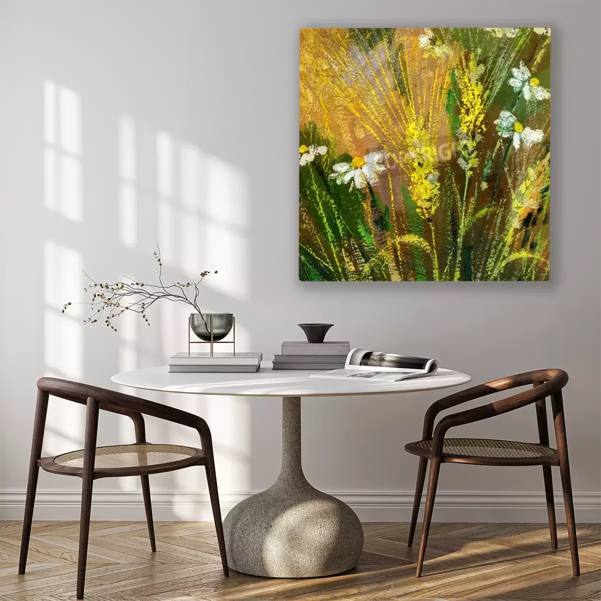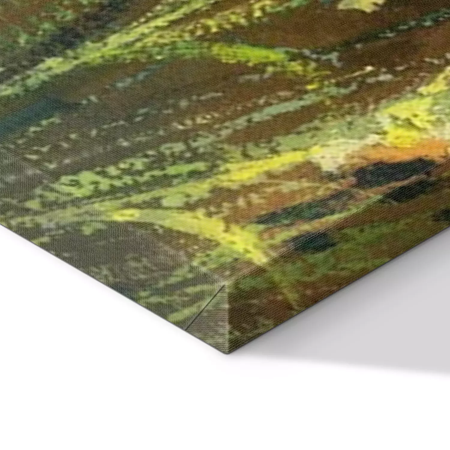 De print wordt aangebracht op hoogwaardig canvas dat op een schildersweefgetouw (spieraam) wordt gespannen. Omdat de print de zijranden bedekt, hoeft het ontwerp niet met een extra kader te worden omlijst. Wij raden ook composities aan die uit meerdere foto's bestaan en zo een coherente compositie vormen.
