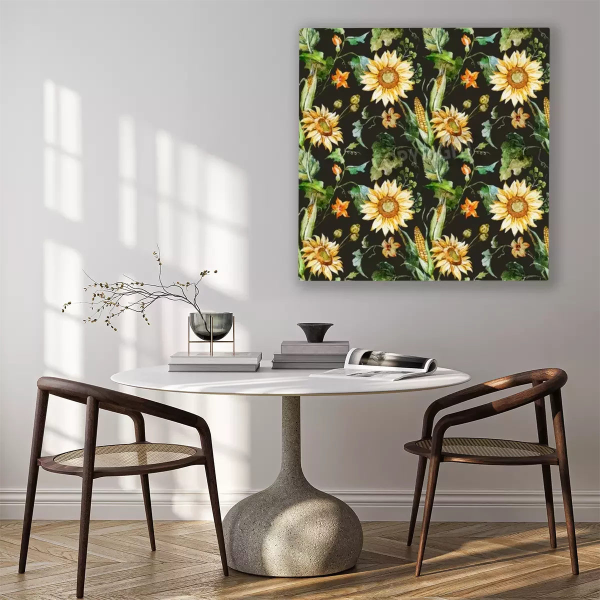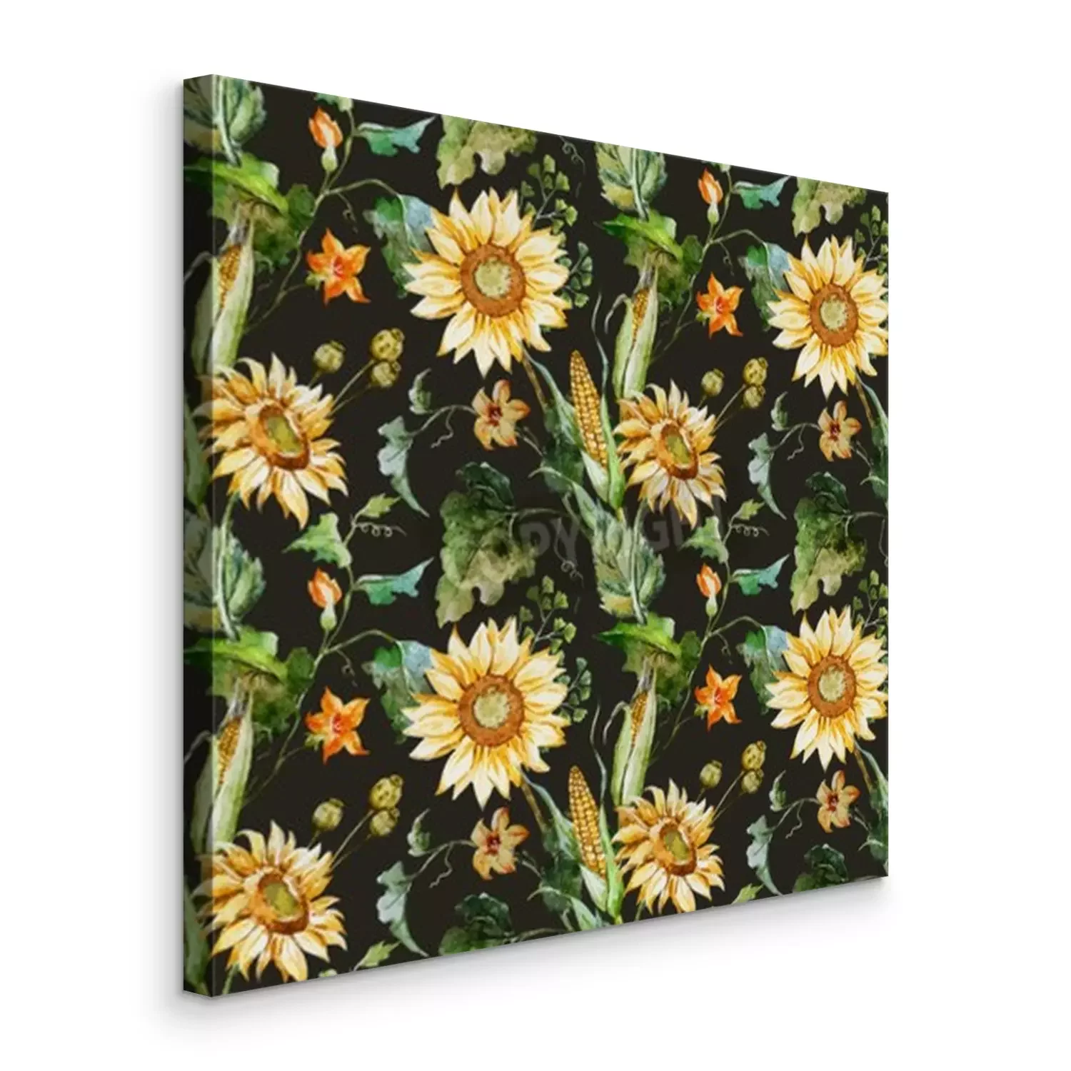 Canvas: Maïs en zonnebloemen op een zwarte achtergrond