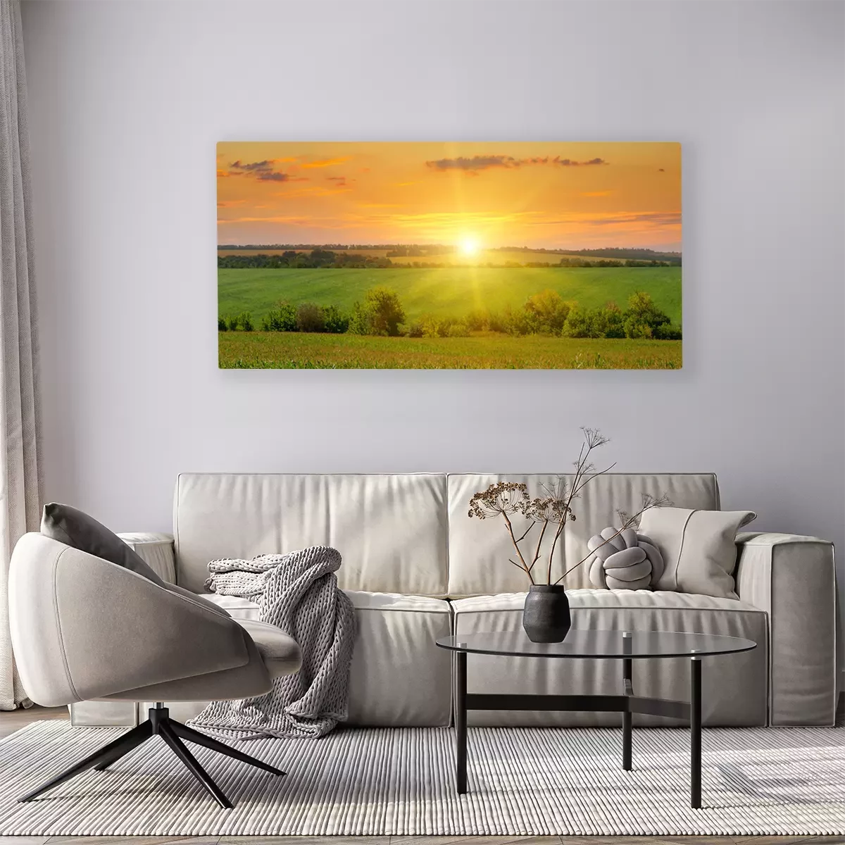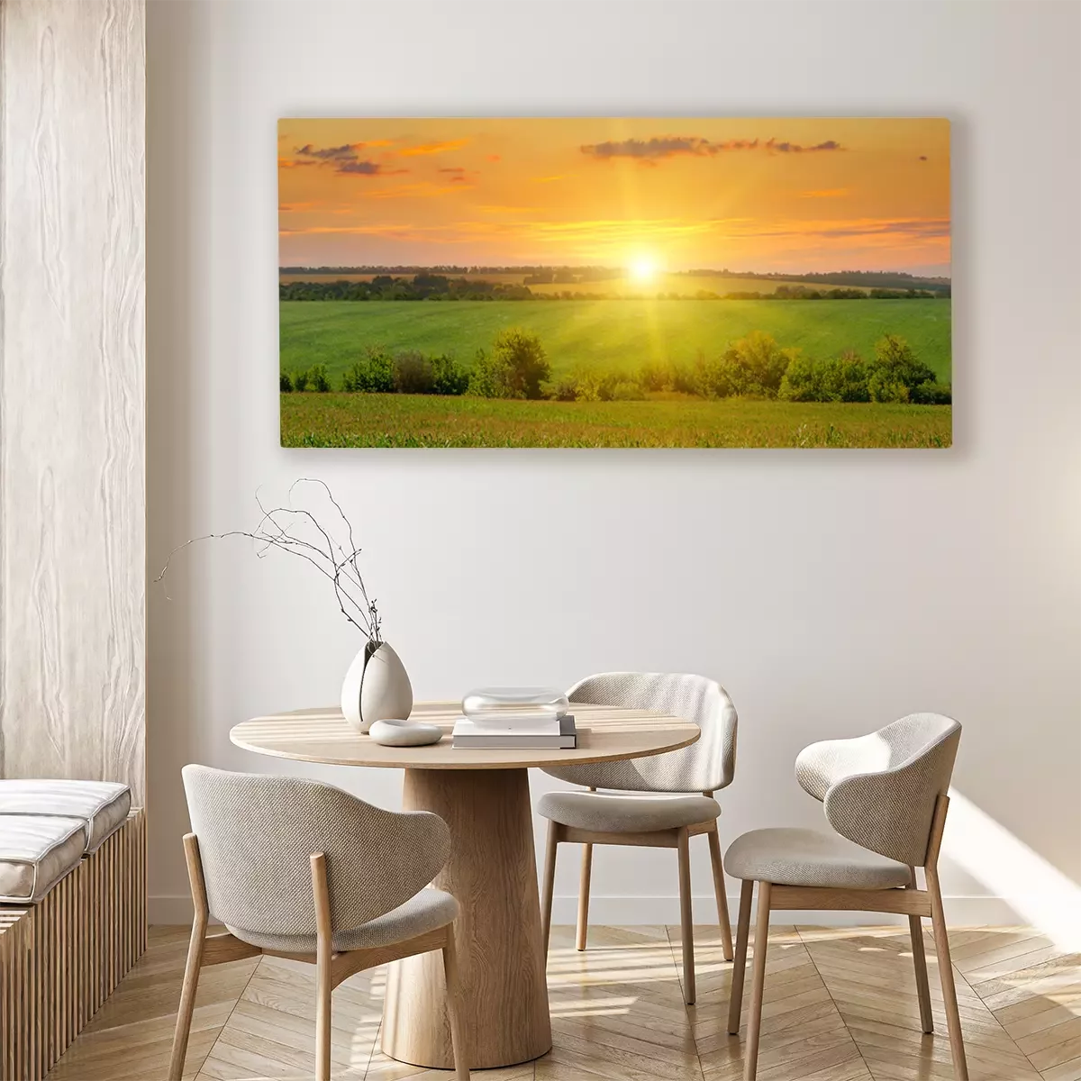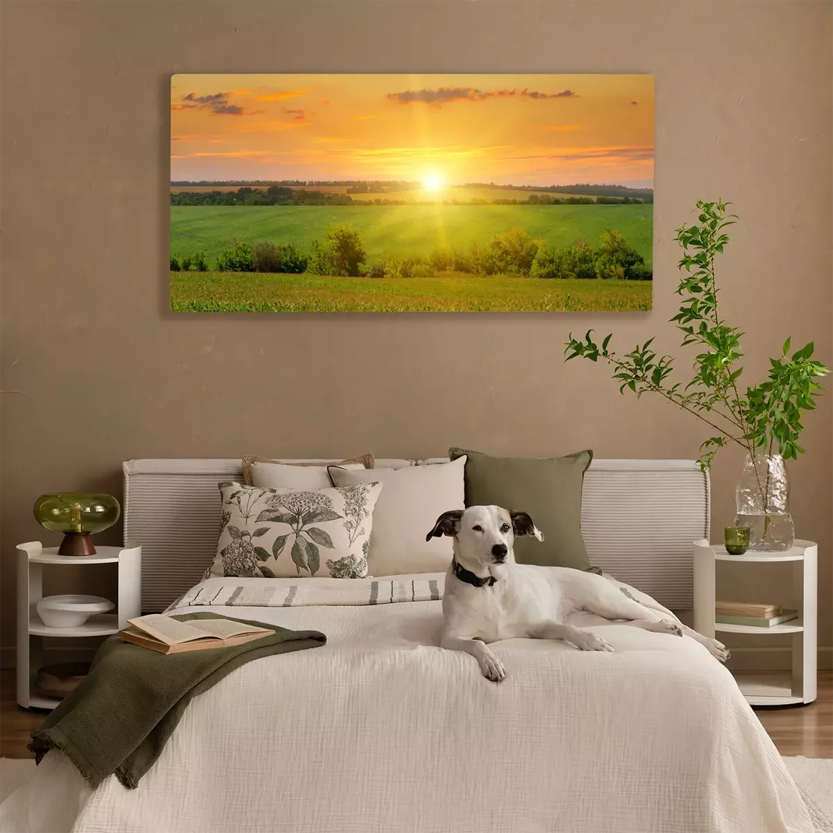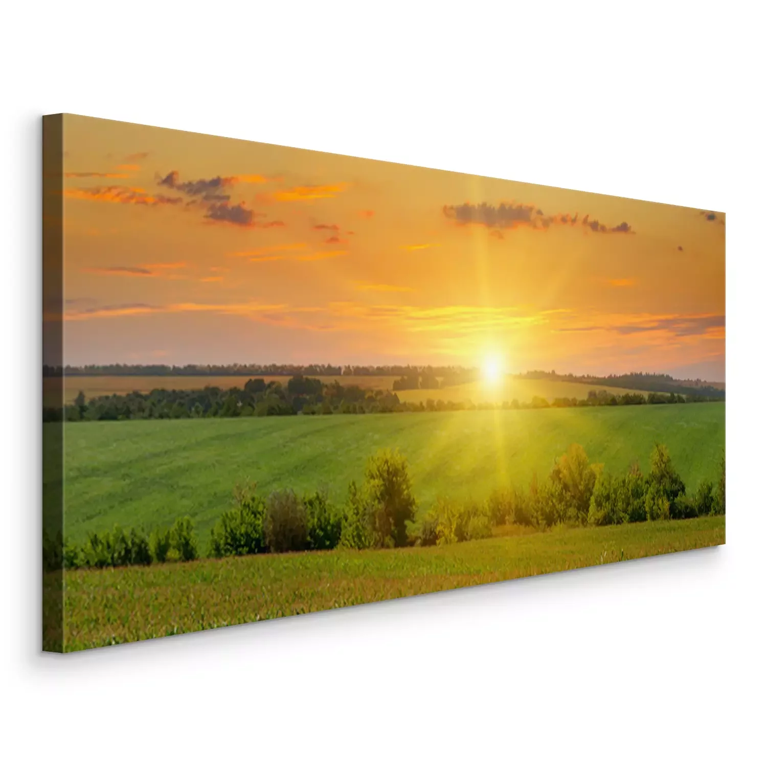 Canvas: maïsveld en zonsopgang op blauwe hemel