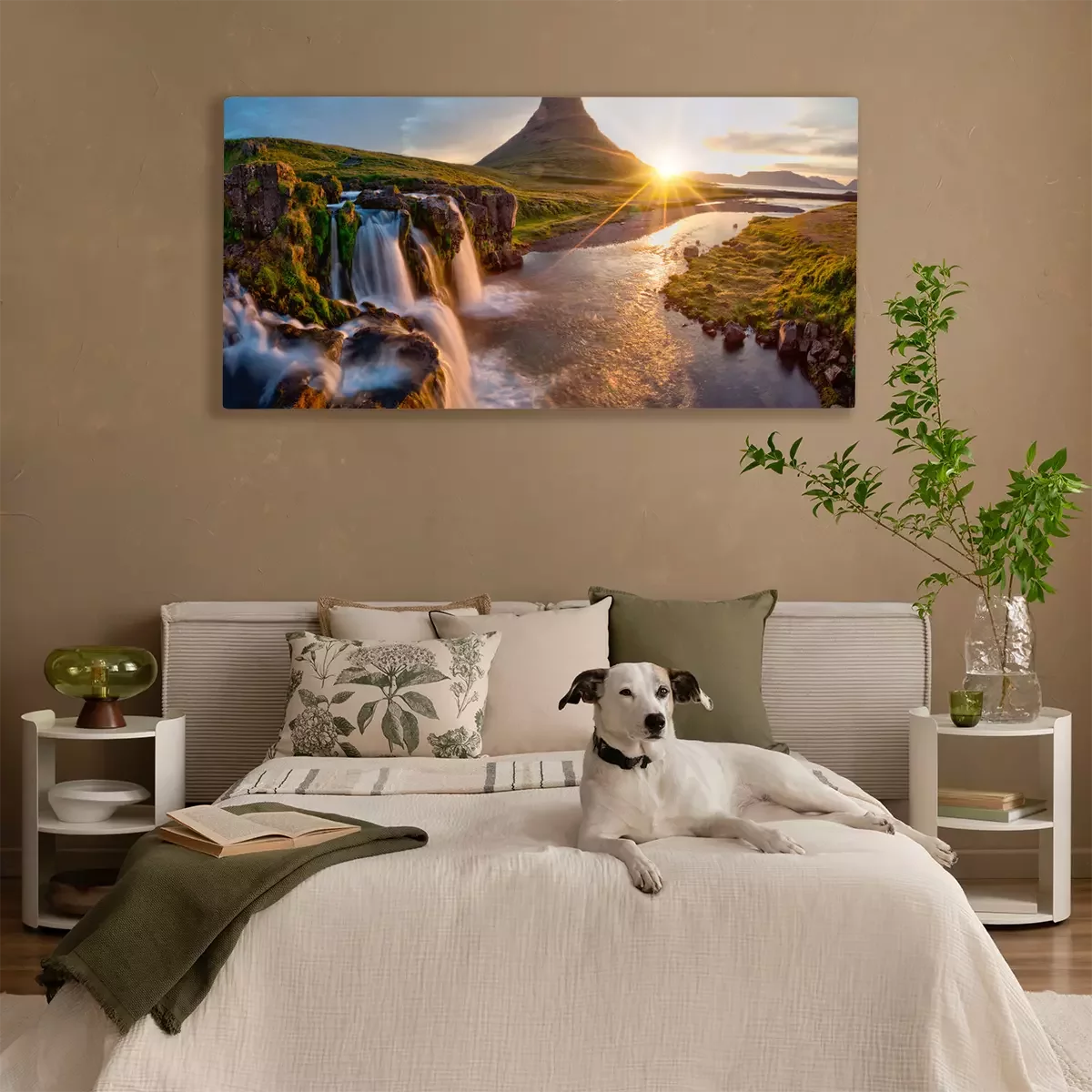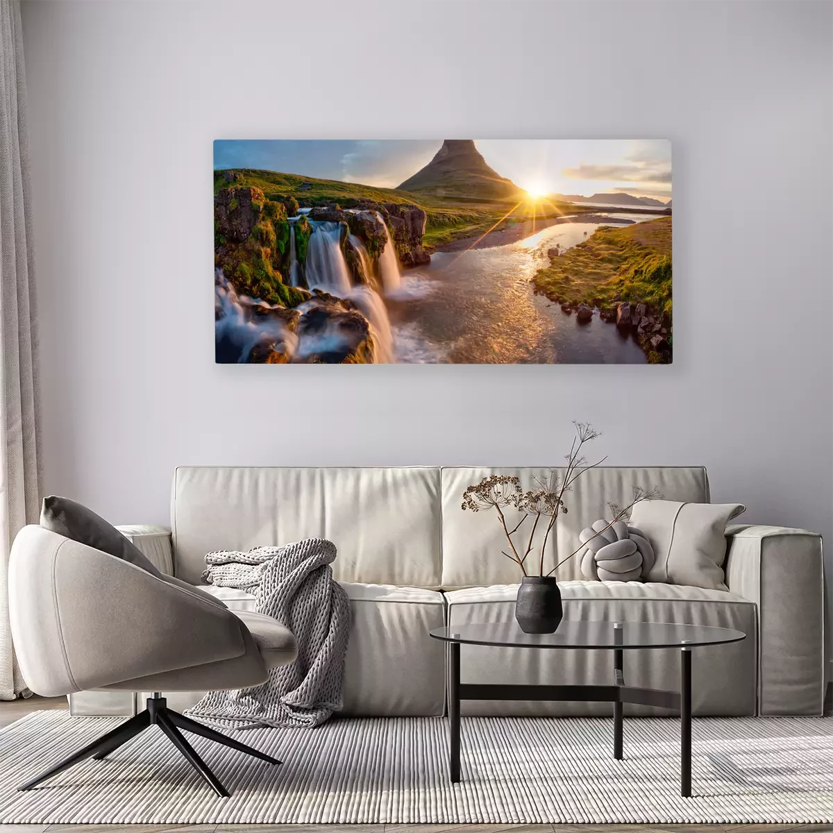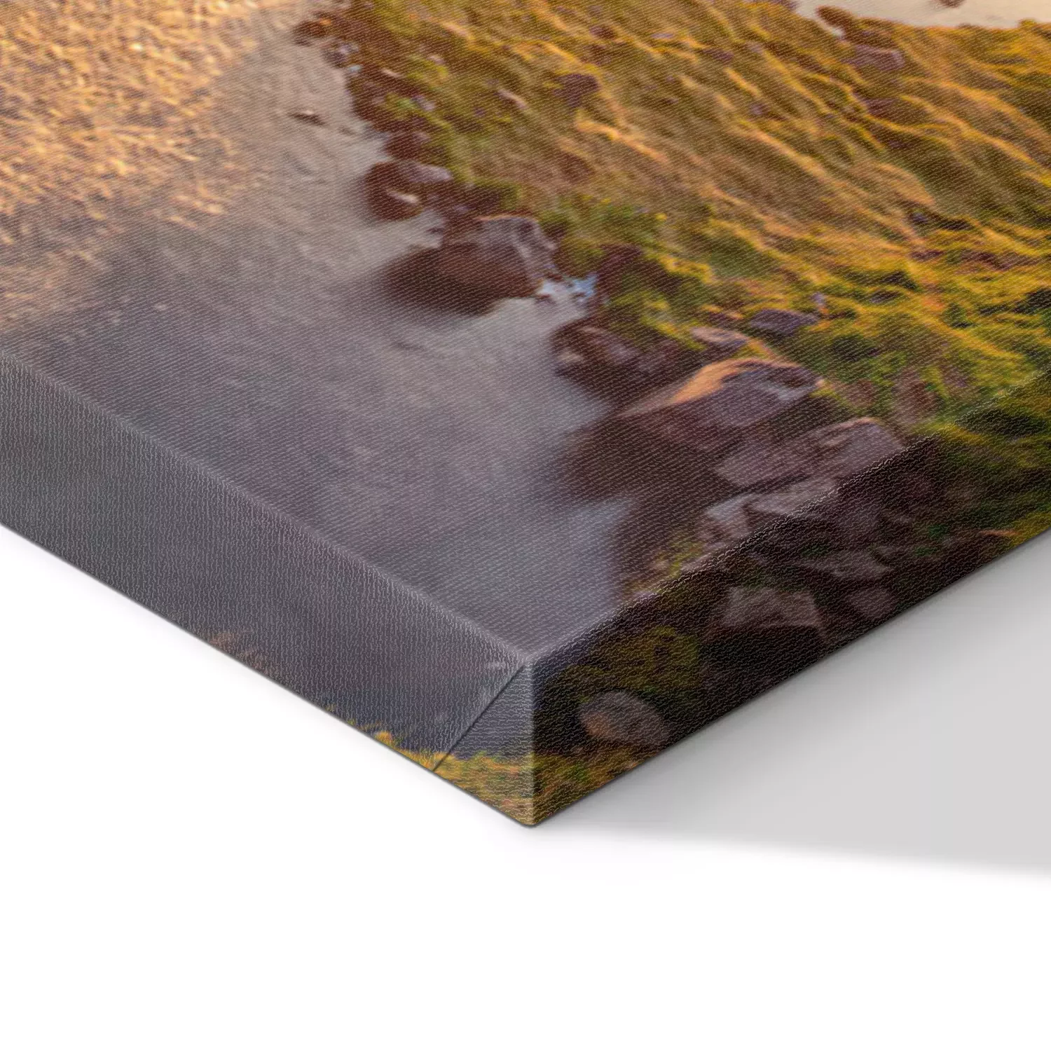 De print wordt aangebracht op hoogwaardig canvas dat op een schildersweefgetouw (spieraam) wordt gespannen. Omdat de print de zijranden bedekt, hoeft het ontwerp niet met een extra kader te worden omlijst. Wij raden ook composities aan die uit meerdere foto's bestaan en zo een coherente compositie vormen.