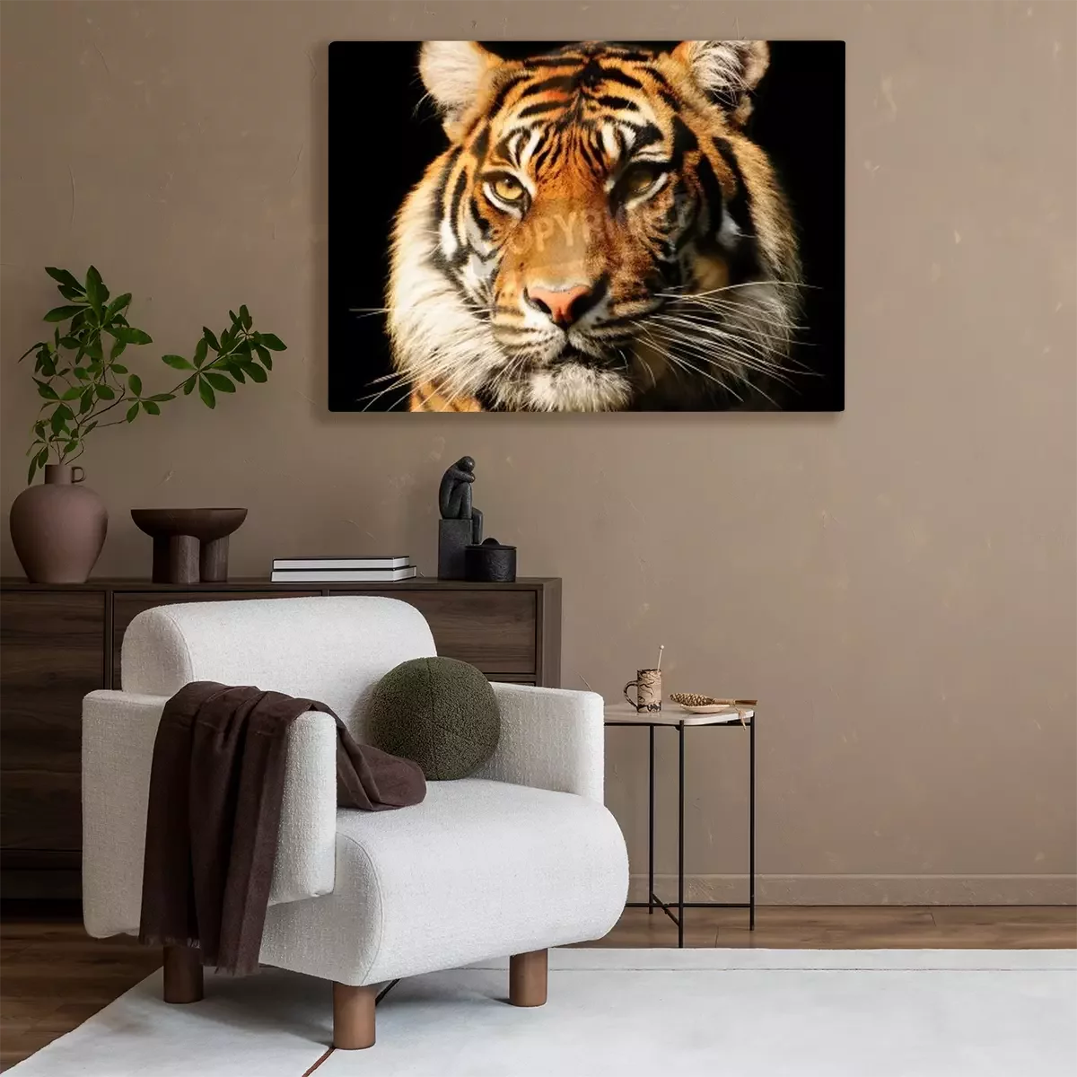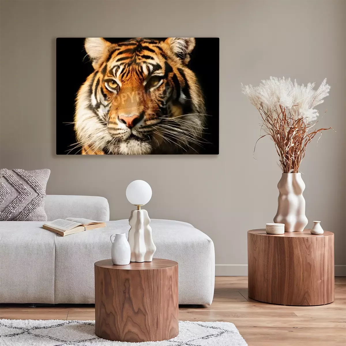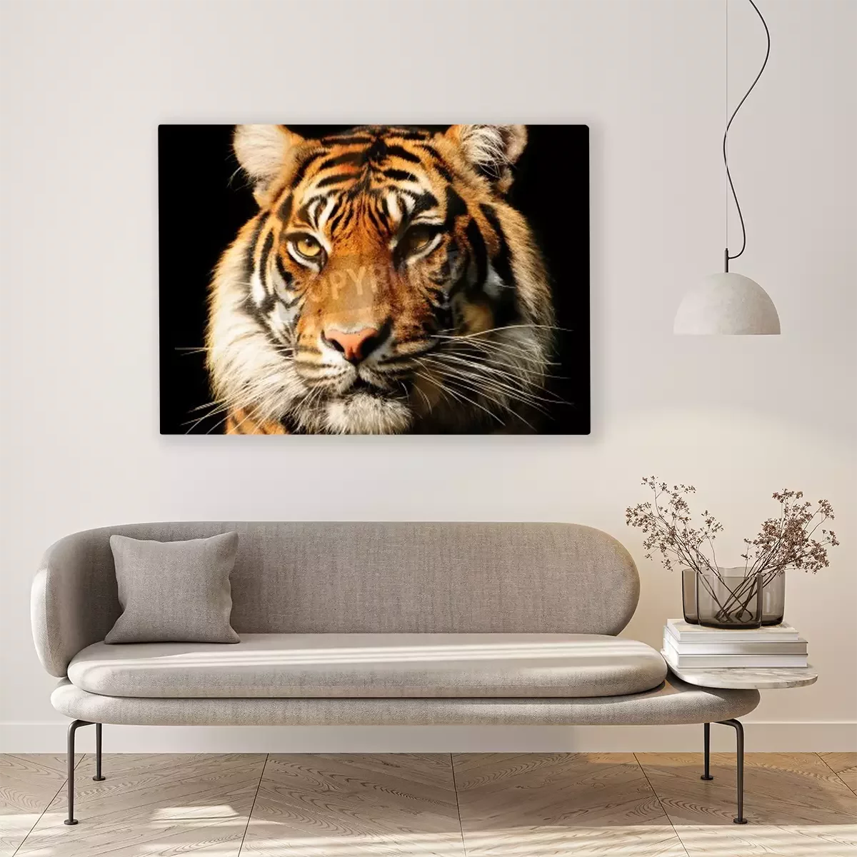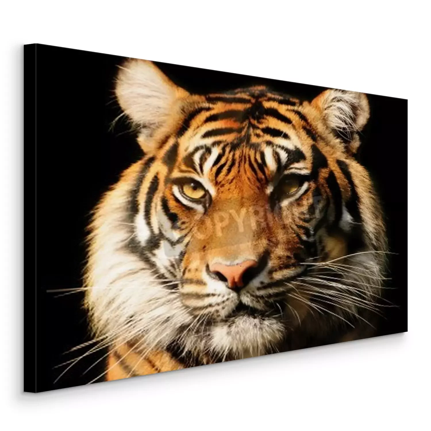 Canvas: Majestueuze tijger op zwarte achtergrond
