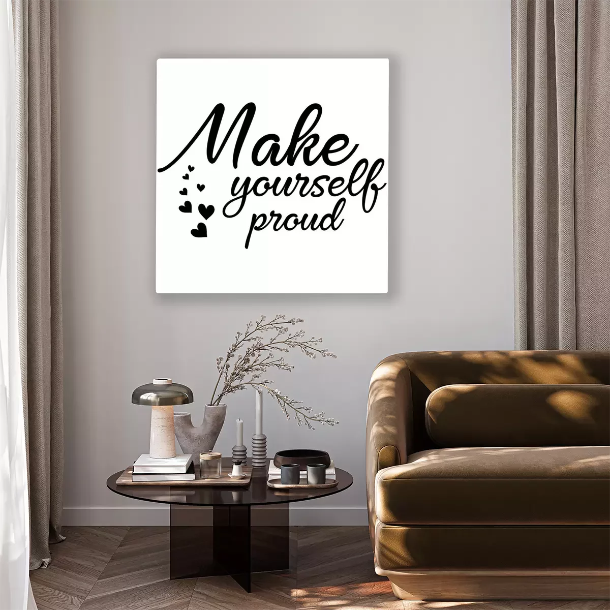 Canvas Make yourself proud motivational slogan inscription. Vector quotes. Illustration for prints on t-shirts and bags, posters, cards. Isolated on white background. Motivational and inspirational phrase.