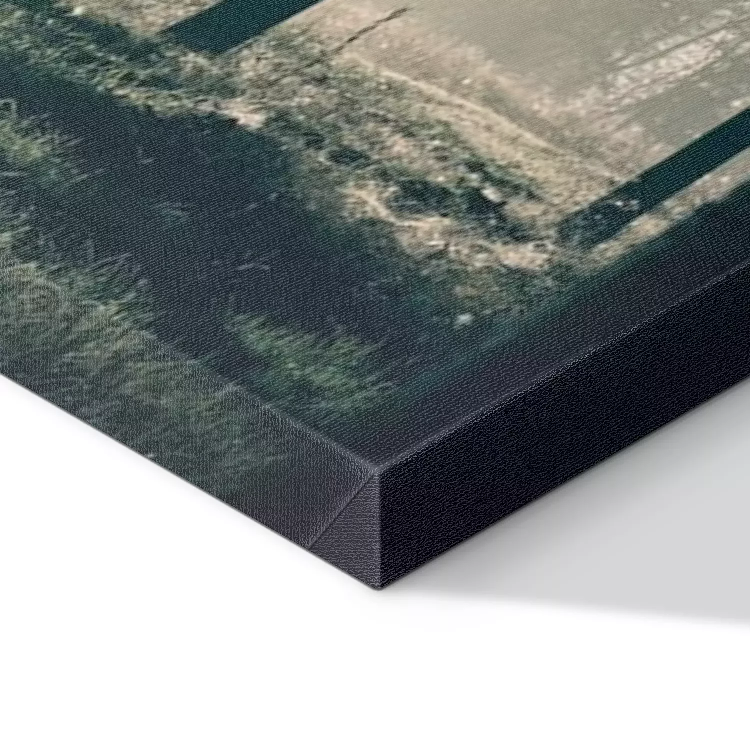 De print wordt aangebracht op hoogwaardig canvas dat op een schildersweefgetouw (spieraam) wordt gespannen. Omdat de print de zijranden bedekt, hoeft het ontwerp niet met een extra kader te worden omlijst. Wij raden ook composities aan die uit meerdere foto's bestaan en zo een coherente compositie vormen.