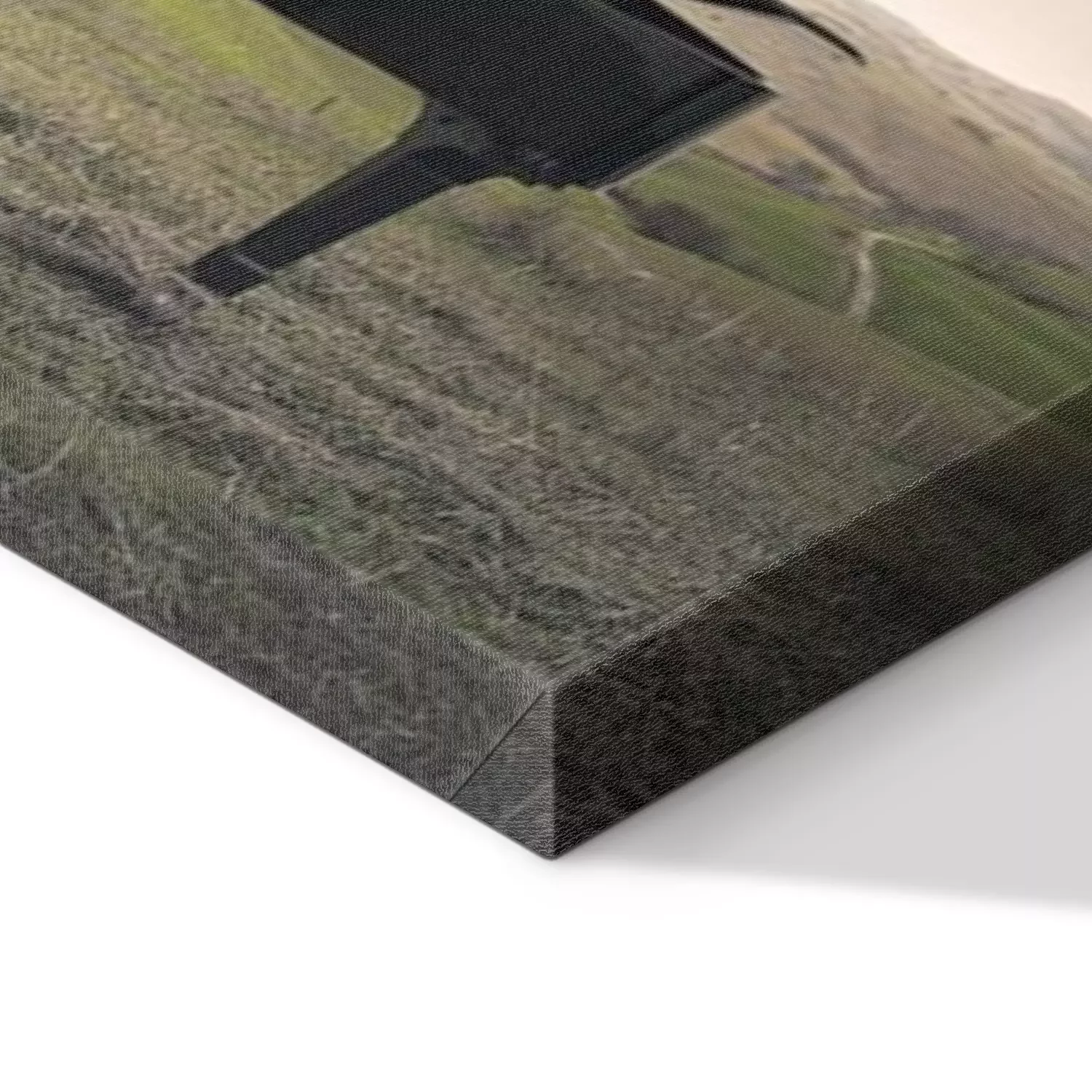 De print wordt aangebracht op hoogwaardig canvas dat op een schildersweefgetouw (spieraam) wordt gespannen. Omdat de print de zijranden bedekt, hoeft het ontwerp niet met een extra kader te worden omlijst. Wij raden ook composities aan die uit meerdere foto's bestaan en zo een coherente compositie vormen.